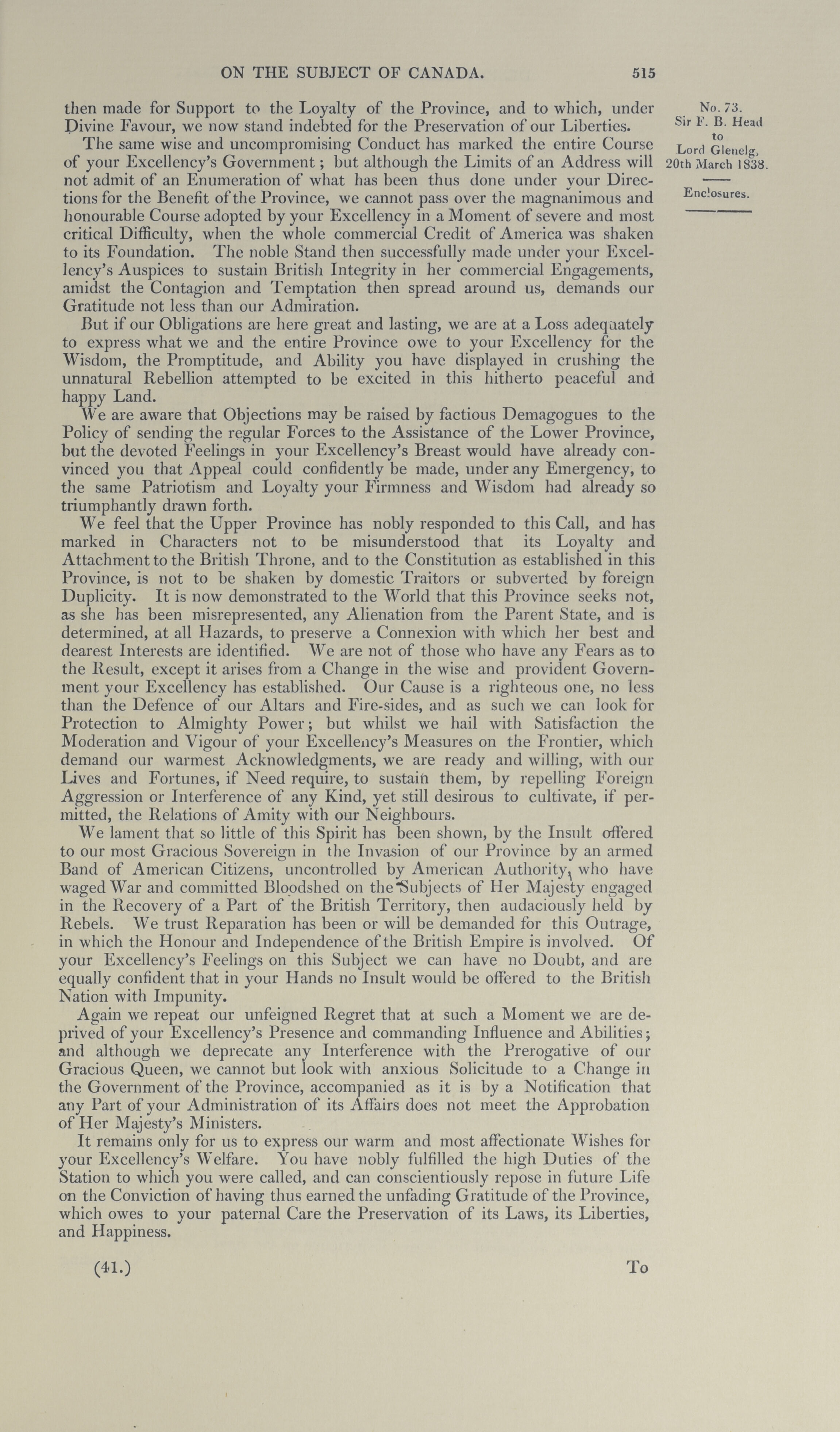 Irish University Press series of British parliamentary papers : despatches from Sir F B Head relating to Canada, with answers from the Secretary of State, 1839