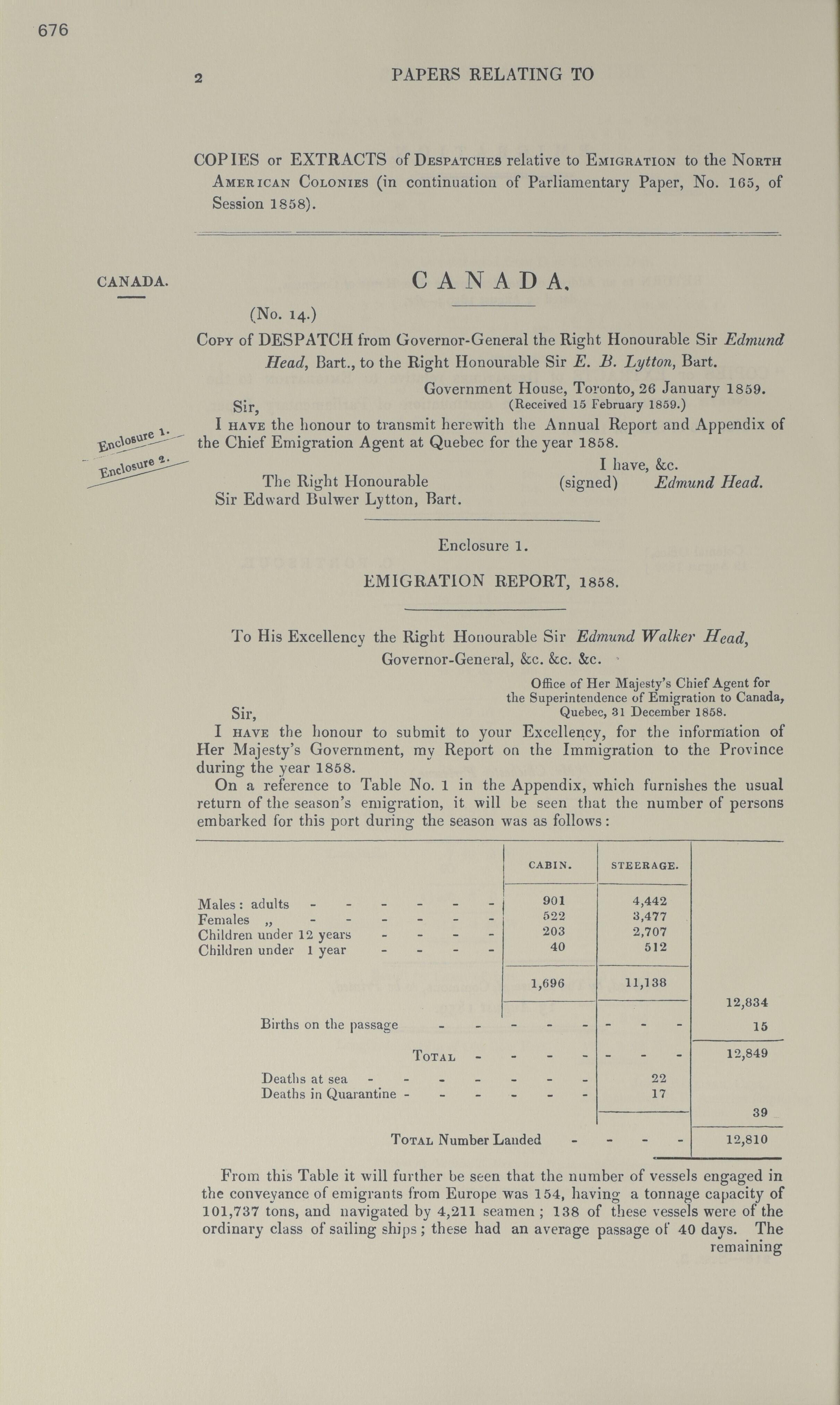 Title on page [i] of the preliminary pages: British parliamentary papers : papers relating to Canada, 1859.