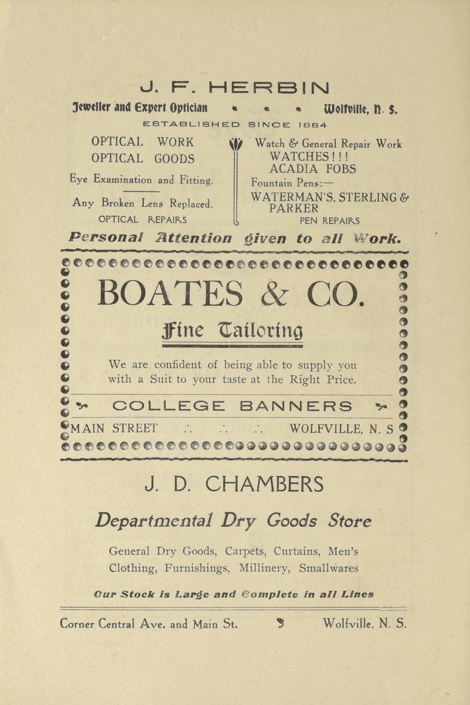 - [Wolfville, N.S.]: [Published by the Athenaeum Society of Acadia University], [1911]