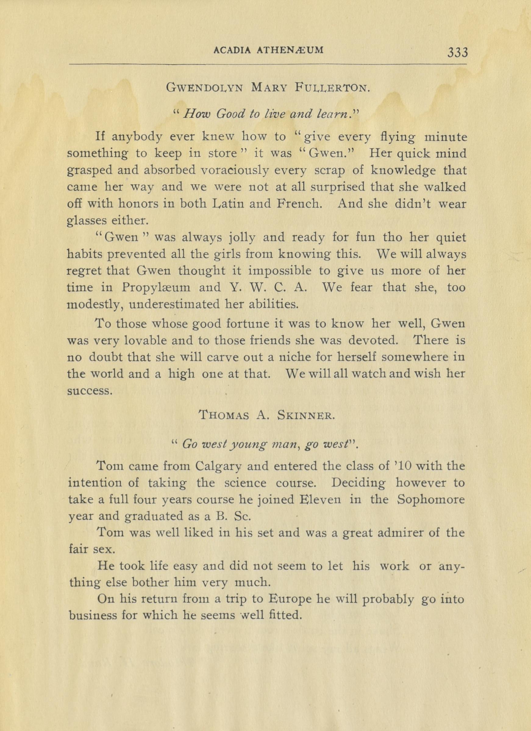 - [Wolfville, N.S.]: [Published by the Athenaeum Society of Acadia University], [1911]