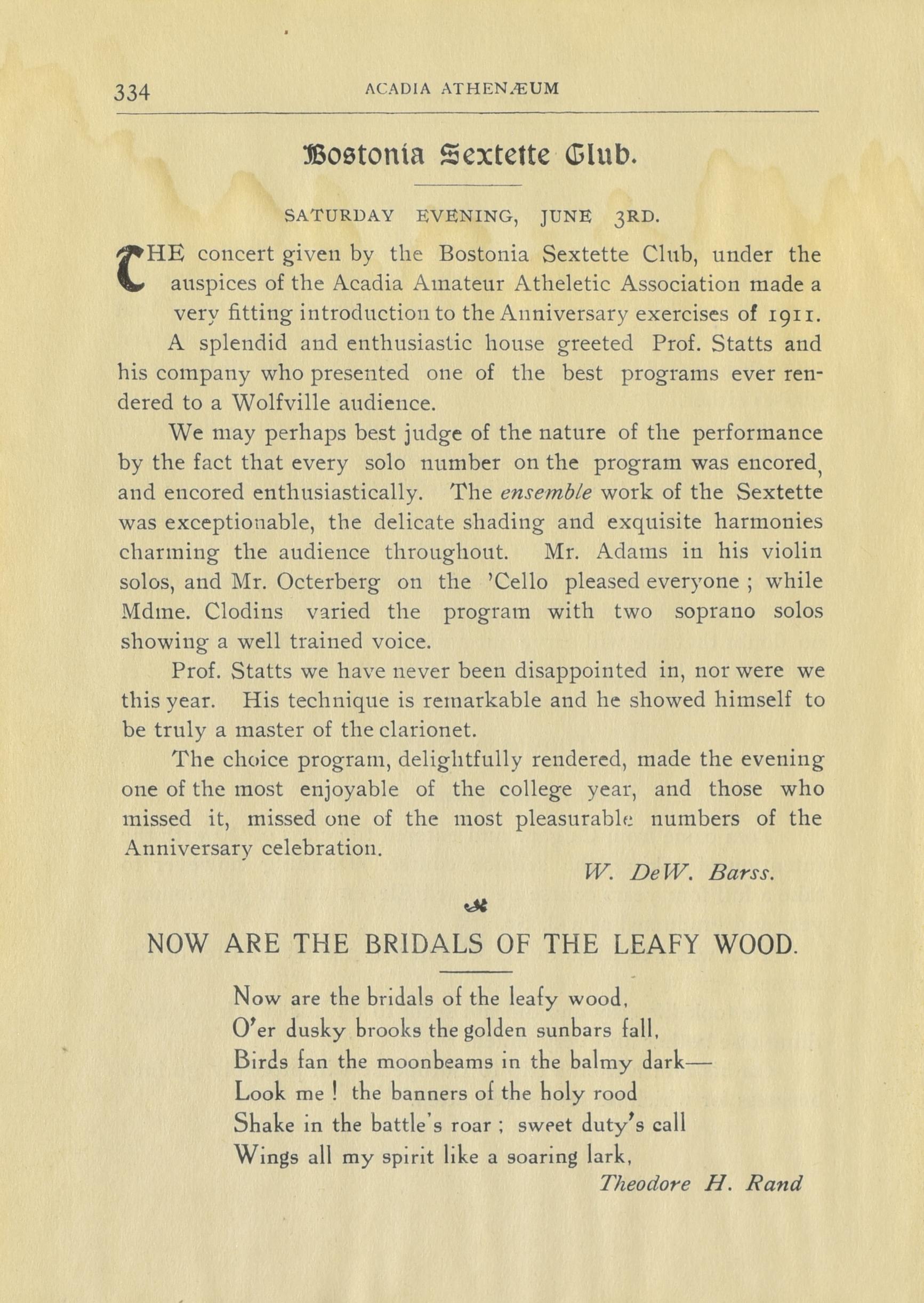 - The Acadia athenaeum : Vol. XXXVII, No. 8 (June 1911)