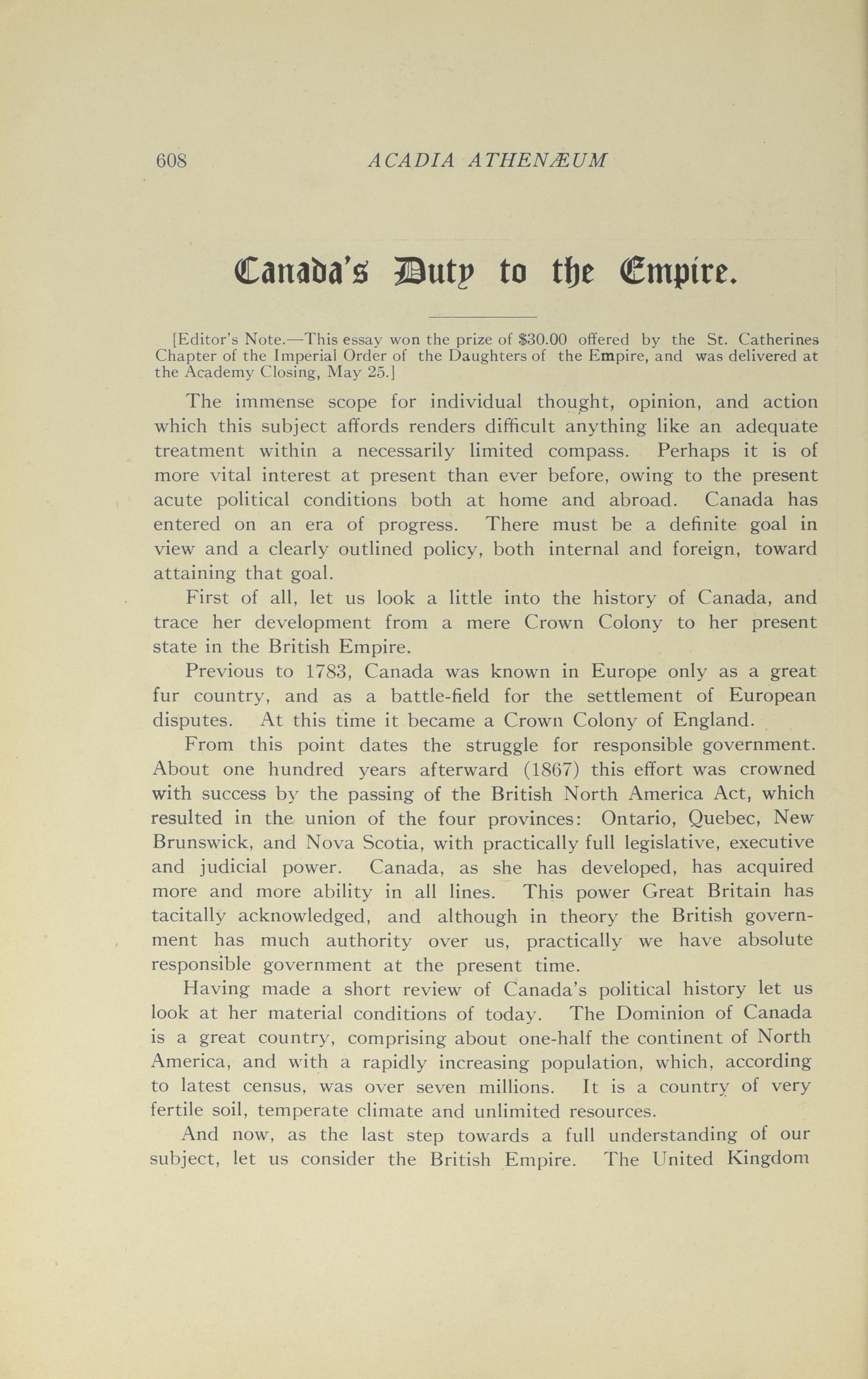 [Wolfville, N.S.]: [Published by the Athenaeum Society of Acadia University], [1914]