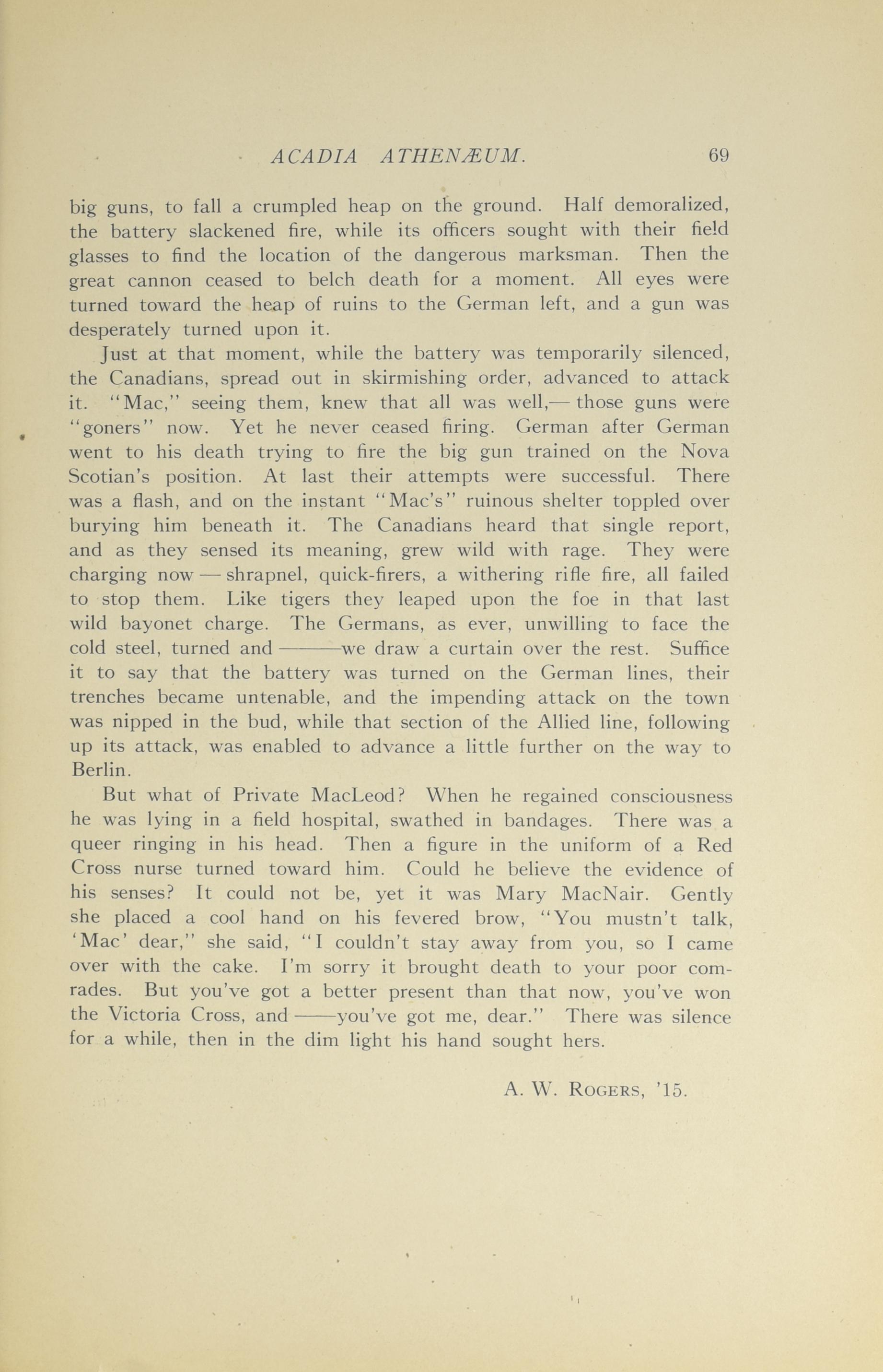 [Wolfville, N.S.]: [Published by the Athenaeum Society of Acadia University], [1914]; 64 images, 63 avec recherche en texte intégral