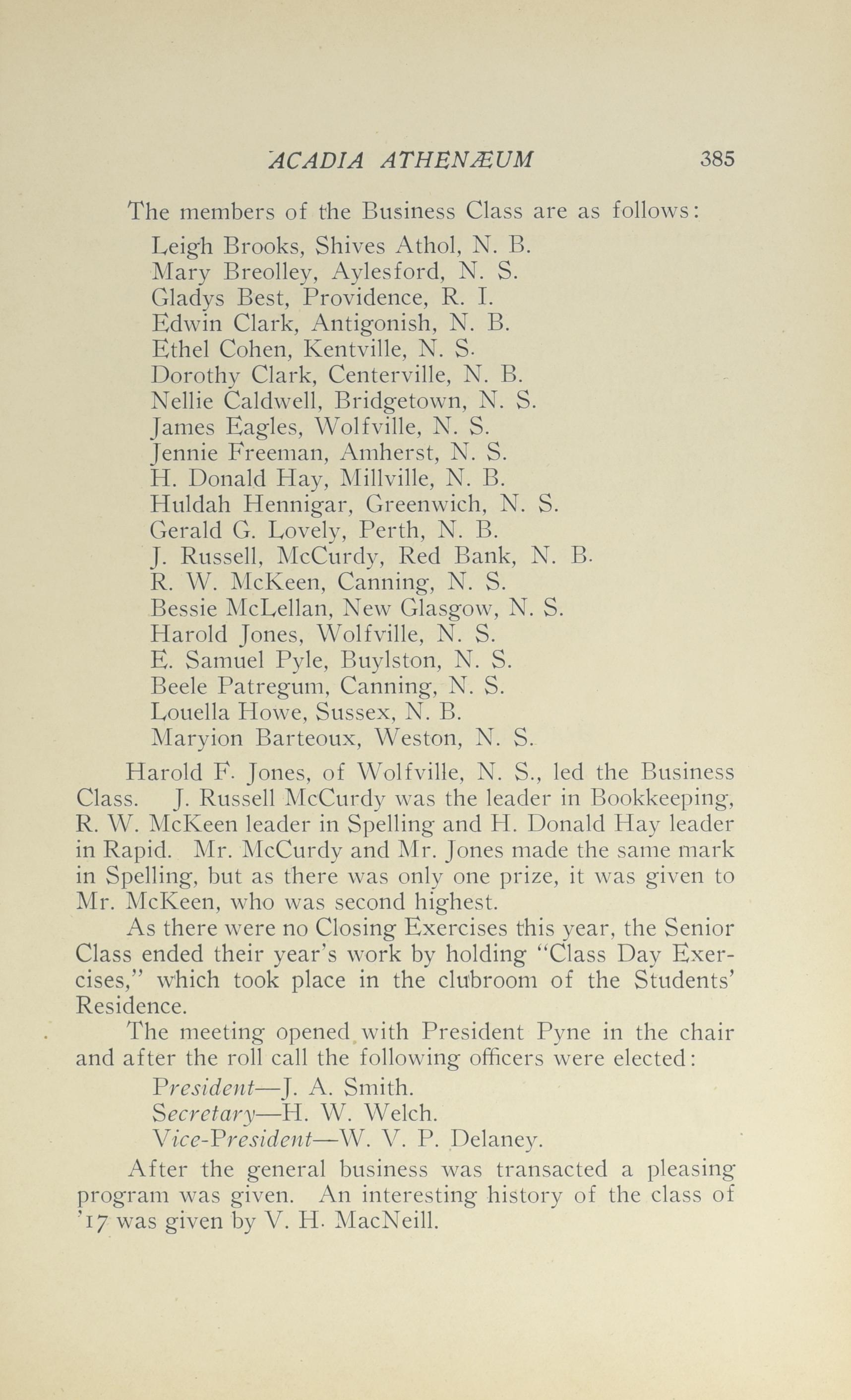 Wolfville, N.S.: [Published by the Athenaeum Society of Acadia University], [1917]
