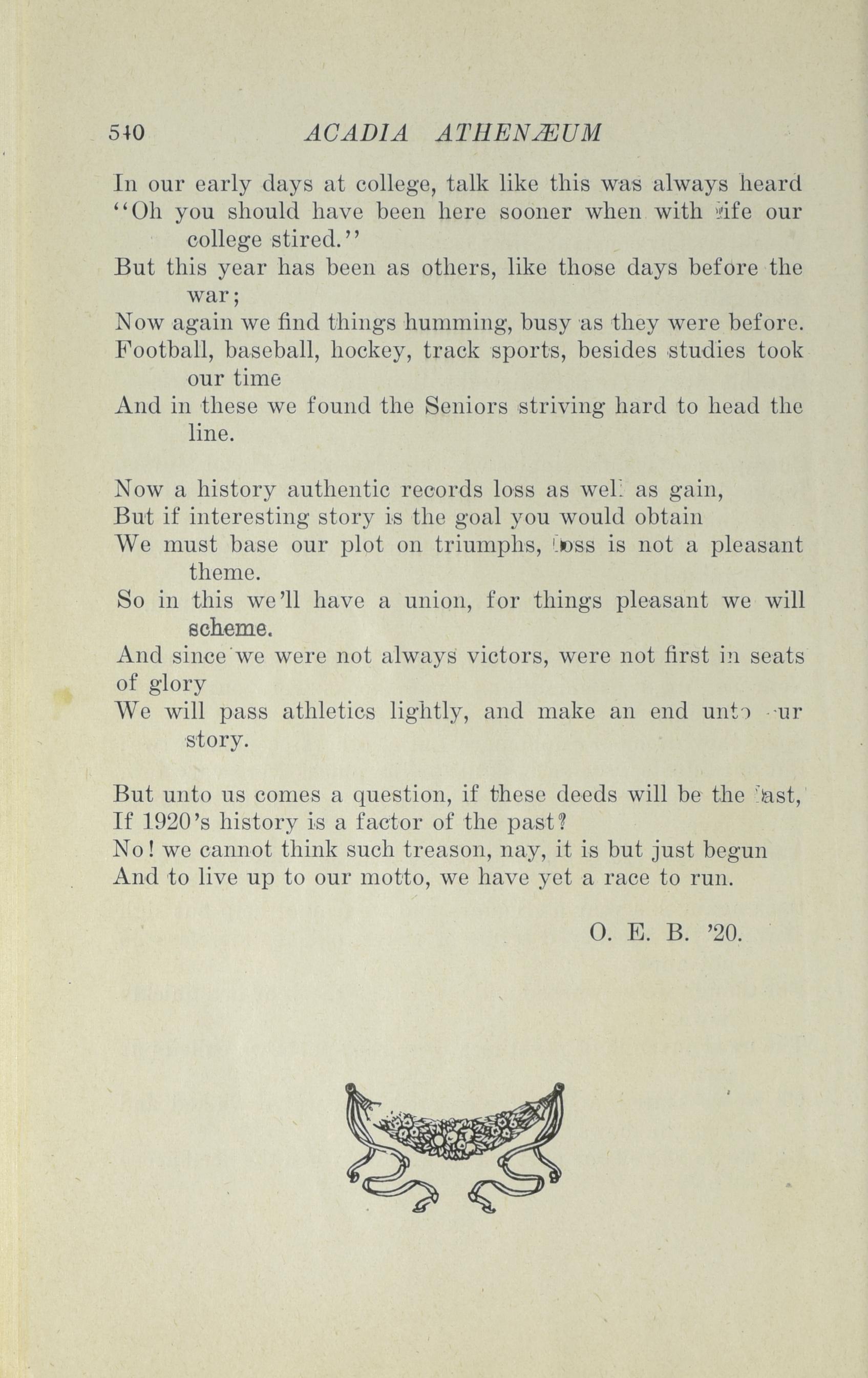 Wolfville, N.S.: [Published by the Athenaeum Society of Acadia University], [1920]