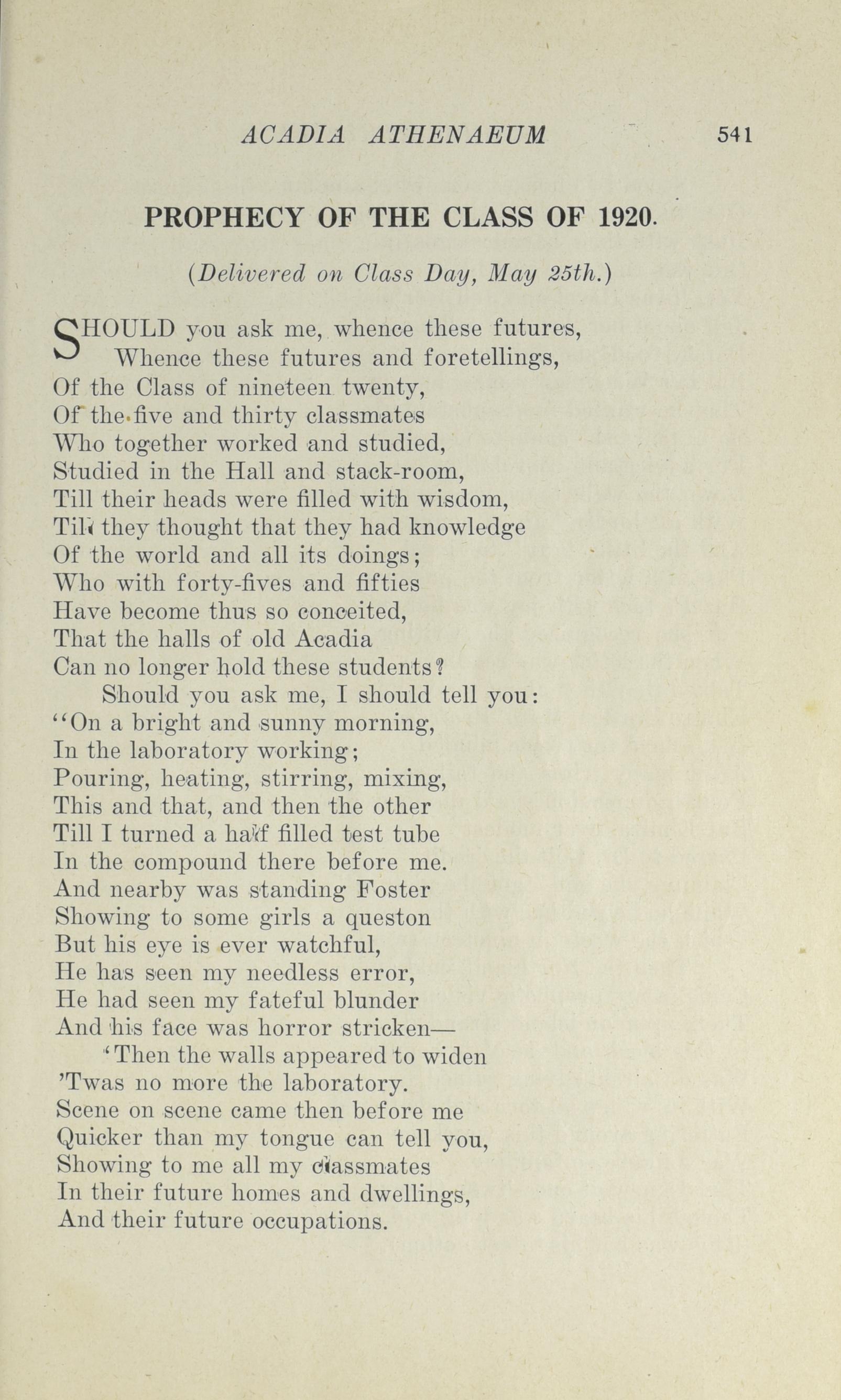 - Wolfville, N.S.: [Published by the Athenaeum Society of Acadia University], [1920]