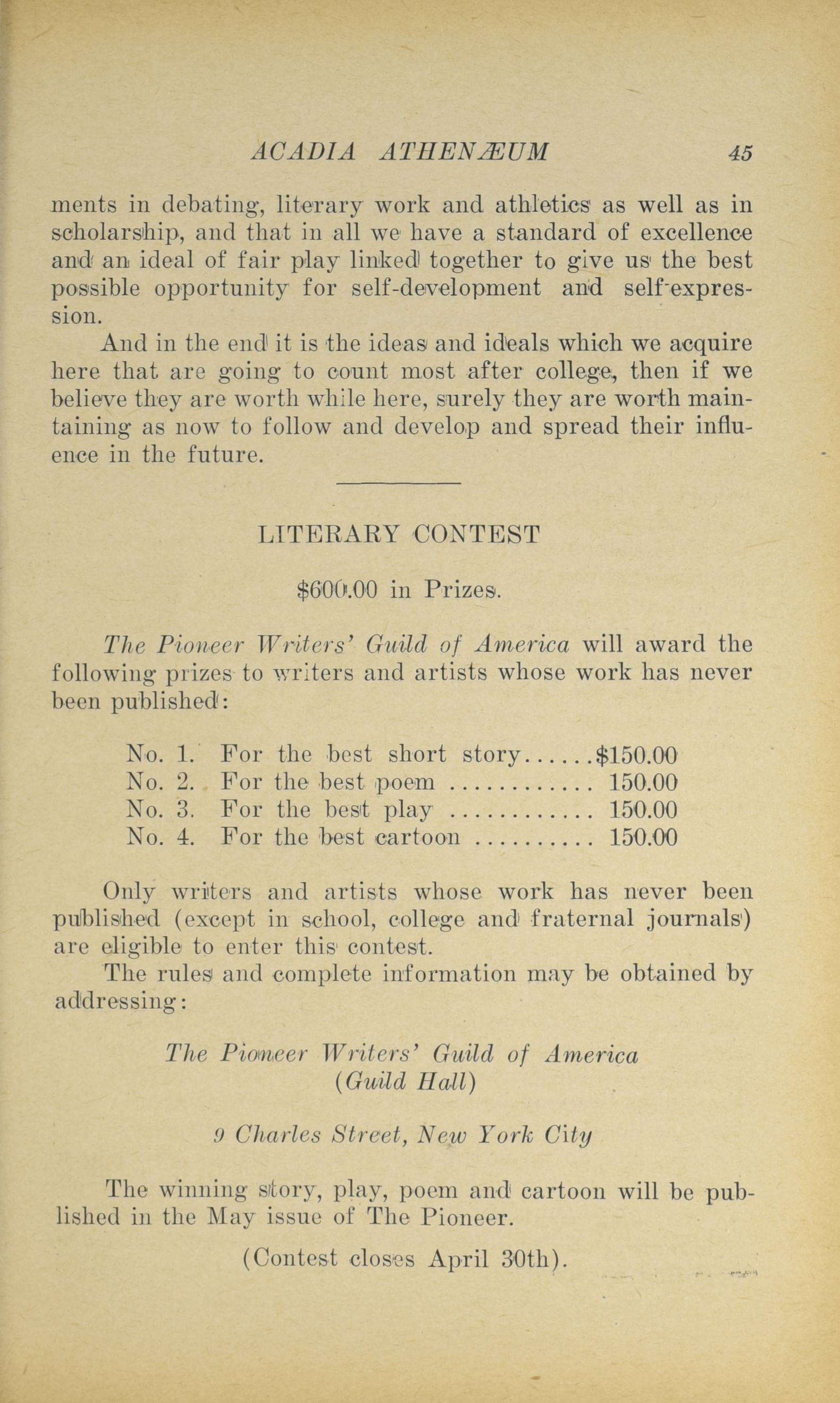 - Wolfville, N.S.: [Published by the Athenaeum Society of Acadia University], [1923]