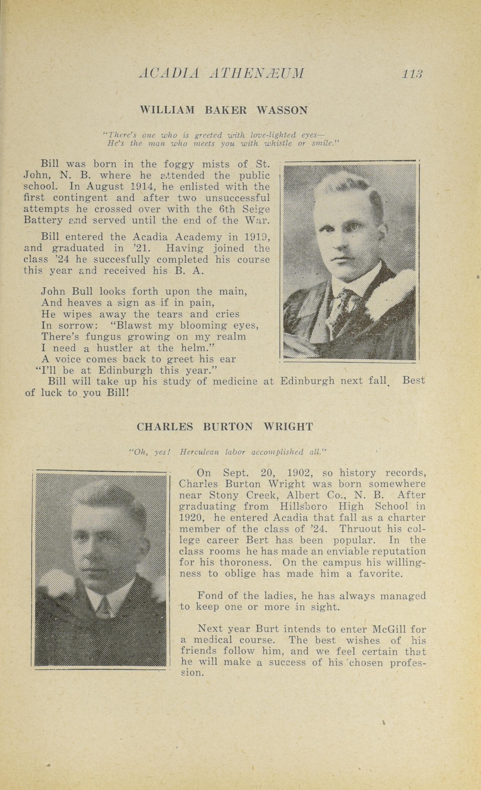 Wolfville, N.S.: [Published by the Athenaeum Society of Acadia University], [1924]