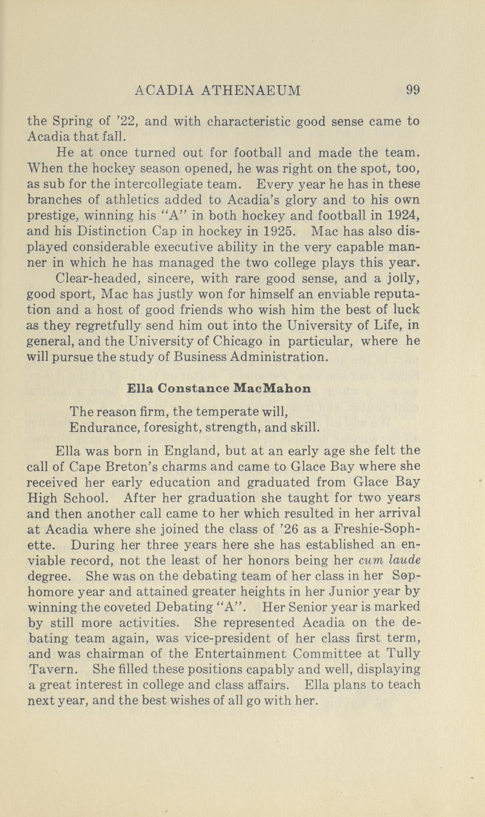 - Wolfville, N.S.: [Published by the Athenaeum Society of Acadia University], [1926]