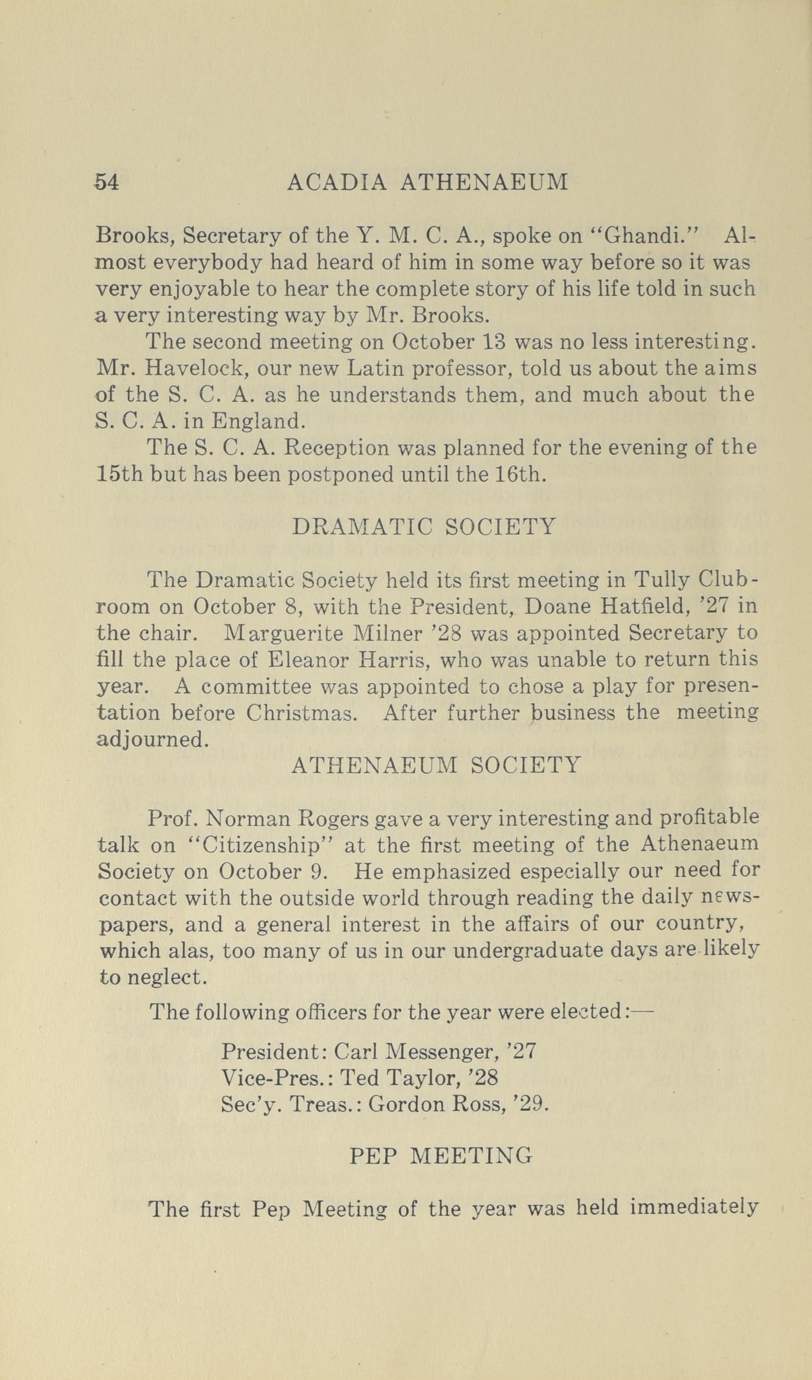 Wolfville, N.S.: [Published by the Athenaeum Society of Acadia University], [1926]; 73 images, 72 with full-text search