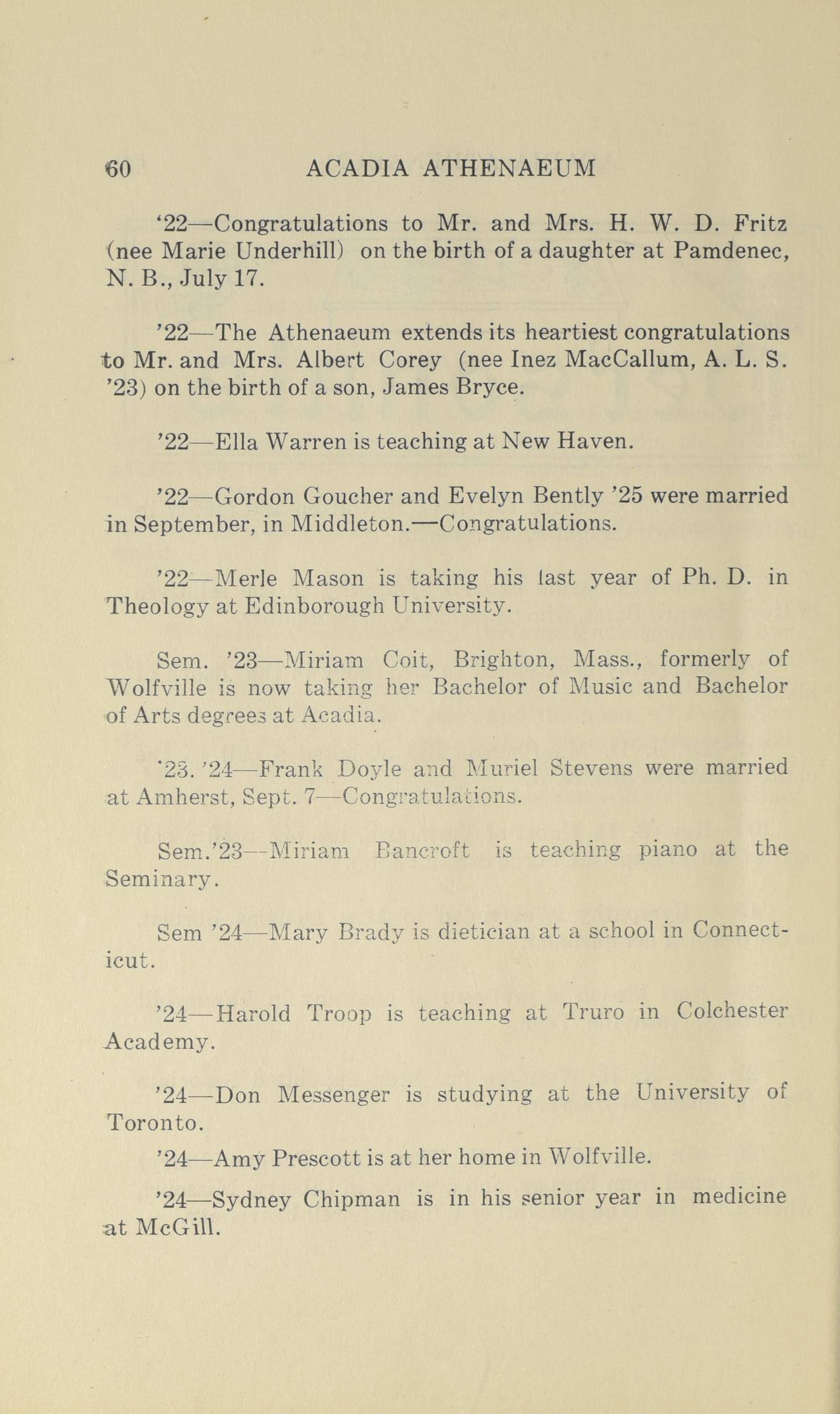 - Scanned from copies held at the Acadia University Archives & Special Collections