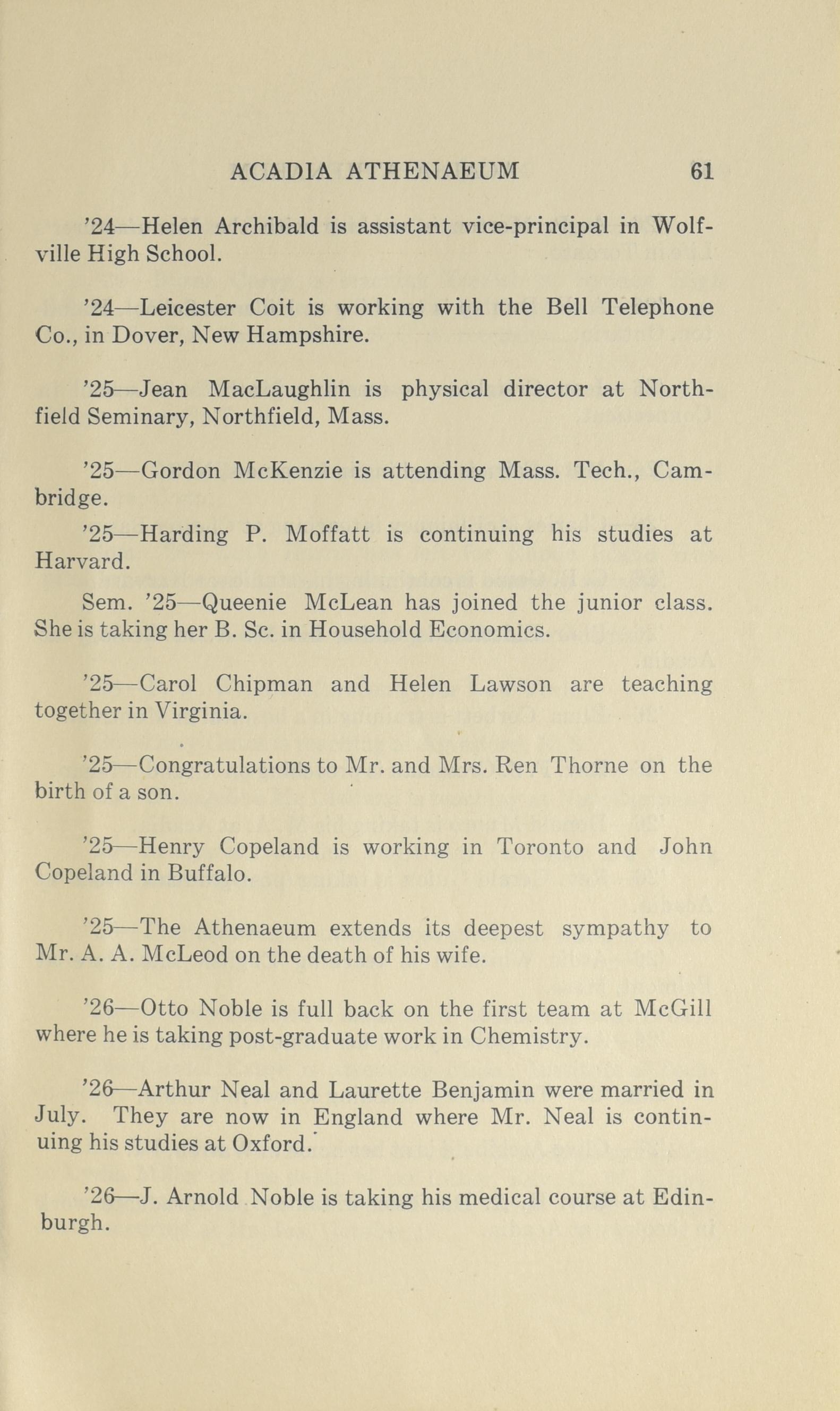 Wolfville, N.S.: [Published by the Athenaeum Society of Acadia University], [1926]; 73 images, 72 with full-text search