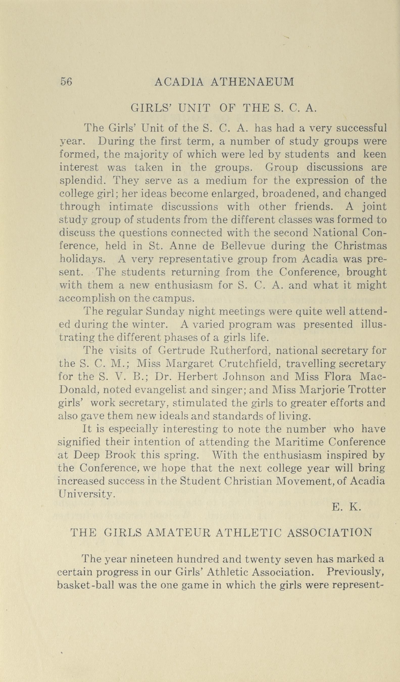 Wolfville, N.S.: [Published by the Athenaeum Society of Acadia University], [1927]
