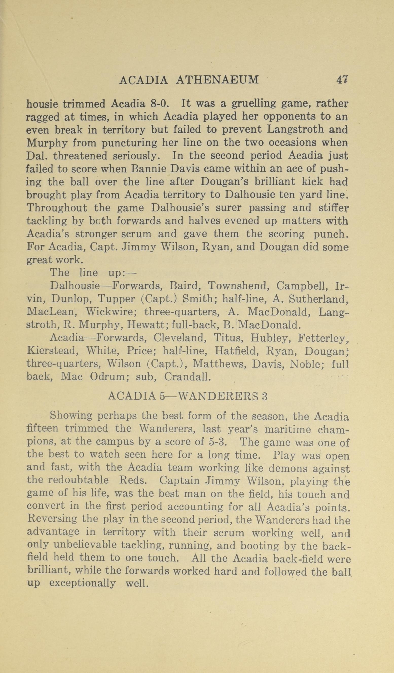 Wolfville, N.S.: [Published by the Athenaeum Society of Acadia University], [1927]; 75 images, 74 avec recherche en texte intégral