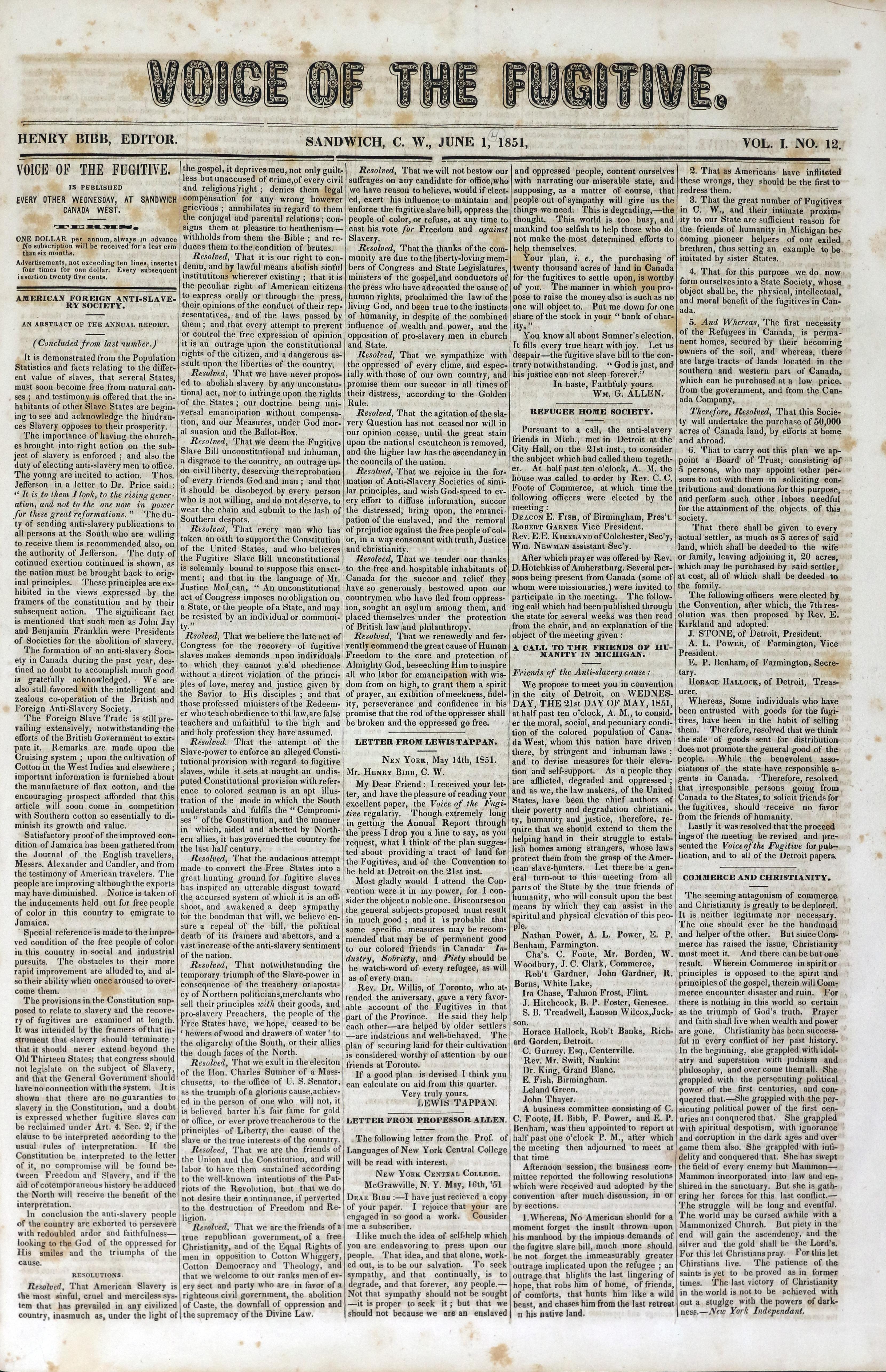 - Voice of the fugitive : Vol. I, No. 12 (June 4, 1851)