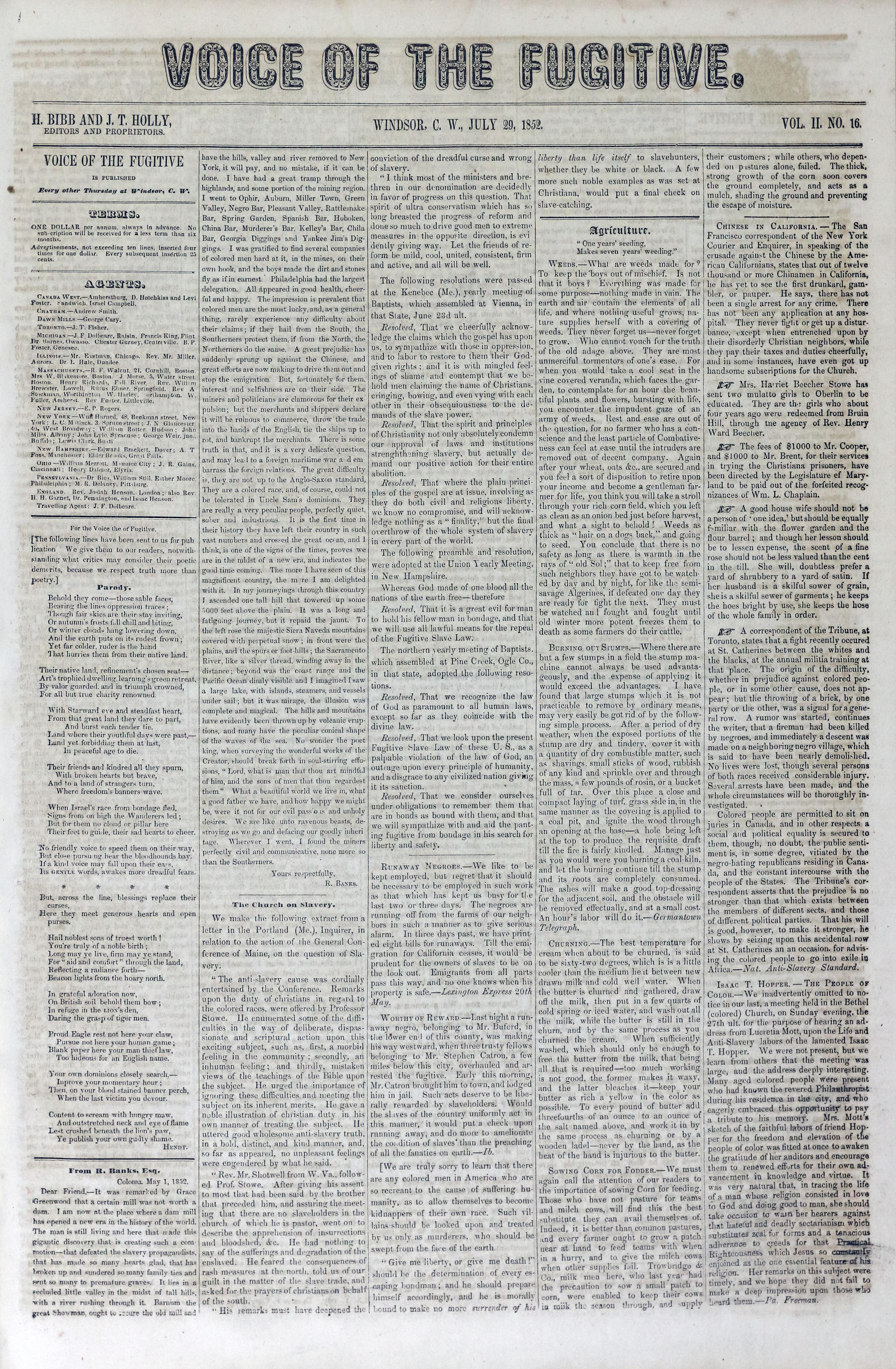 - Voice of the fugitive : Vol. II, No. 16 (July 29, 1852)