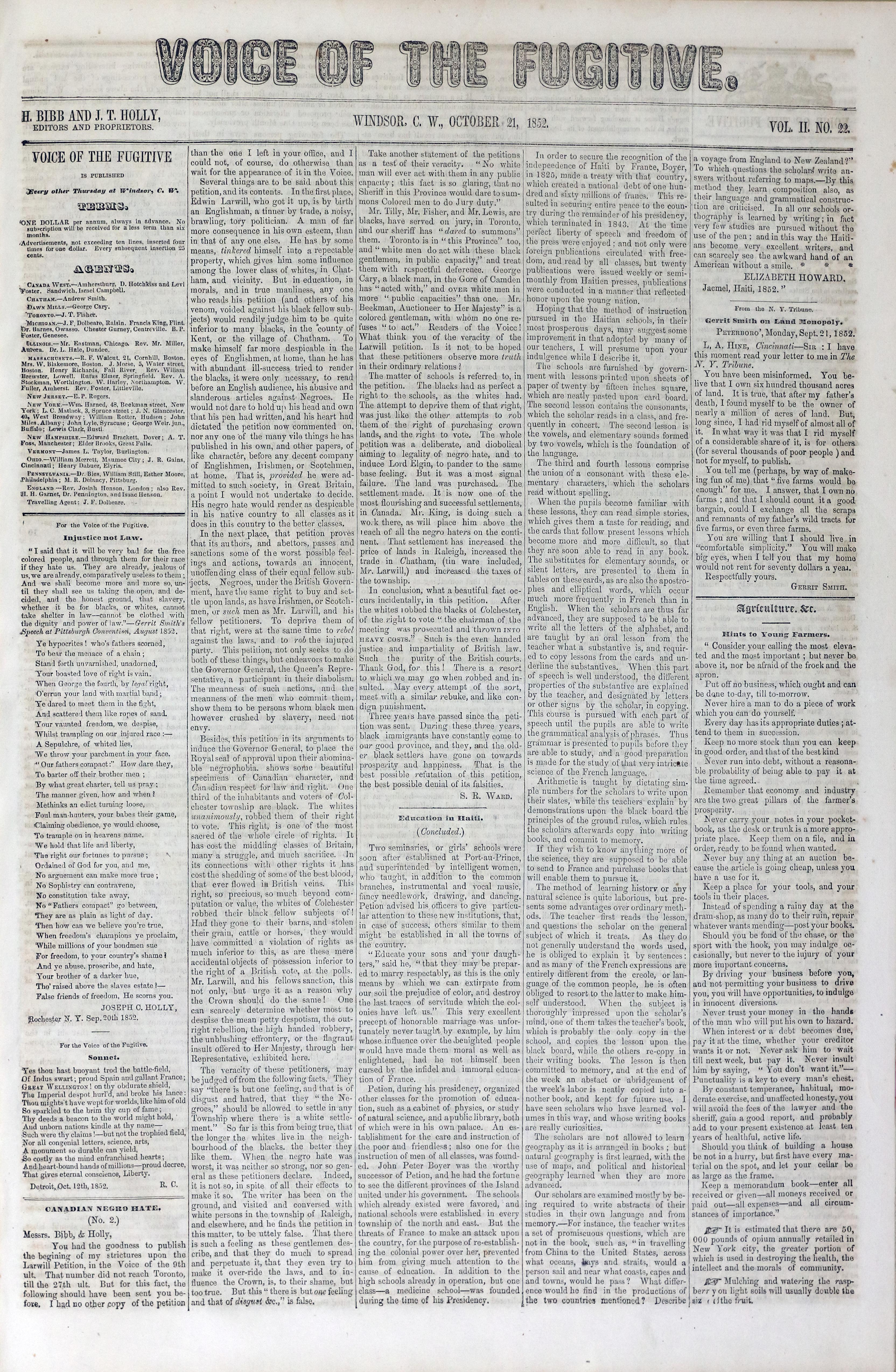 - Voice of the fugitive : Vol. II, No. 22 (October 21, 1852)