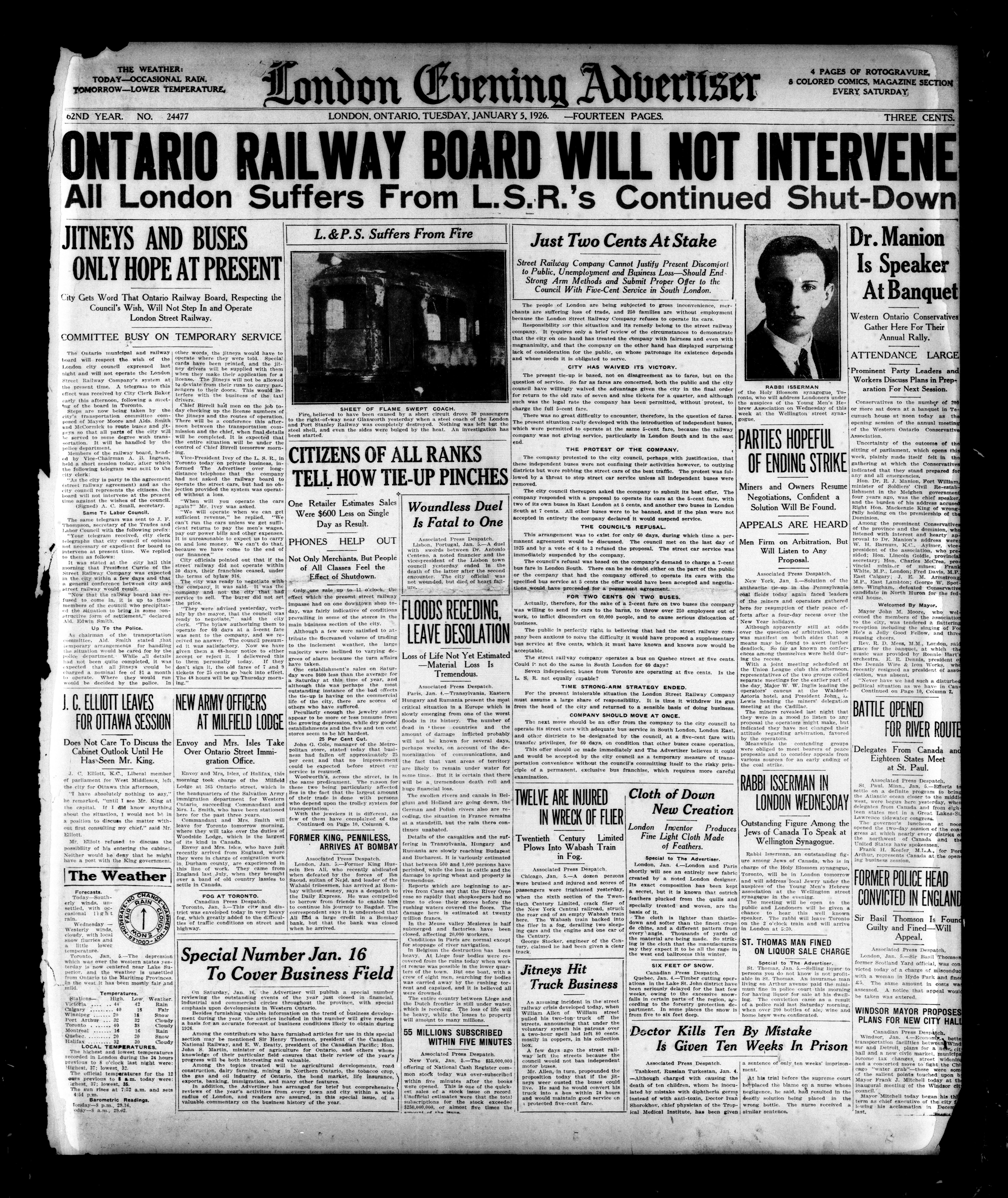 London, Ontario : London Advertiser Company, Limited, [1926]; 14 images, 0 avec recherche en texte intégral