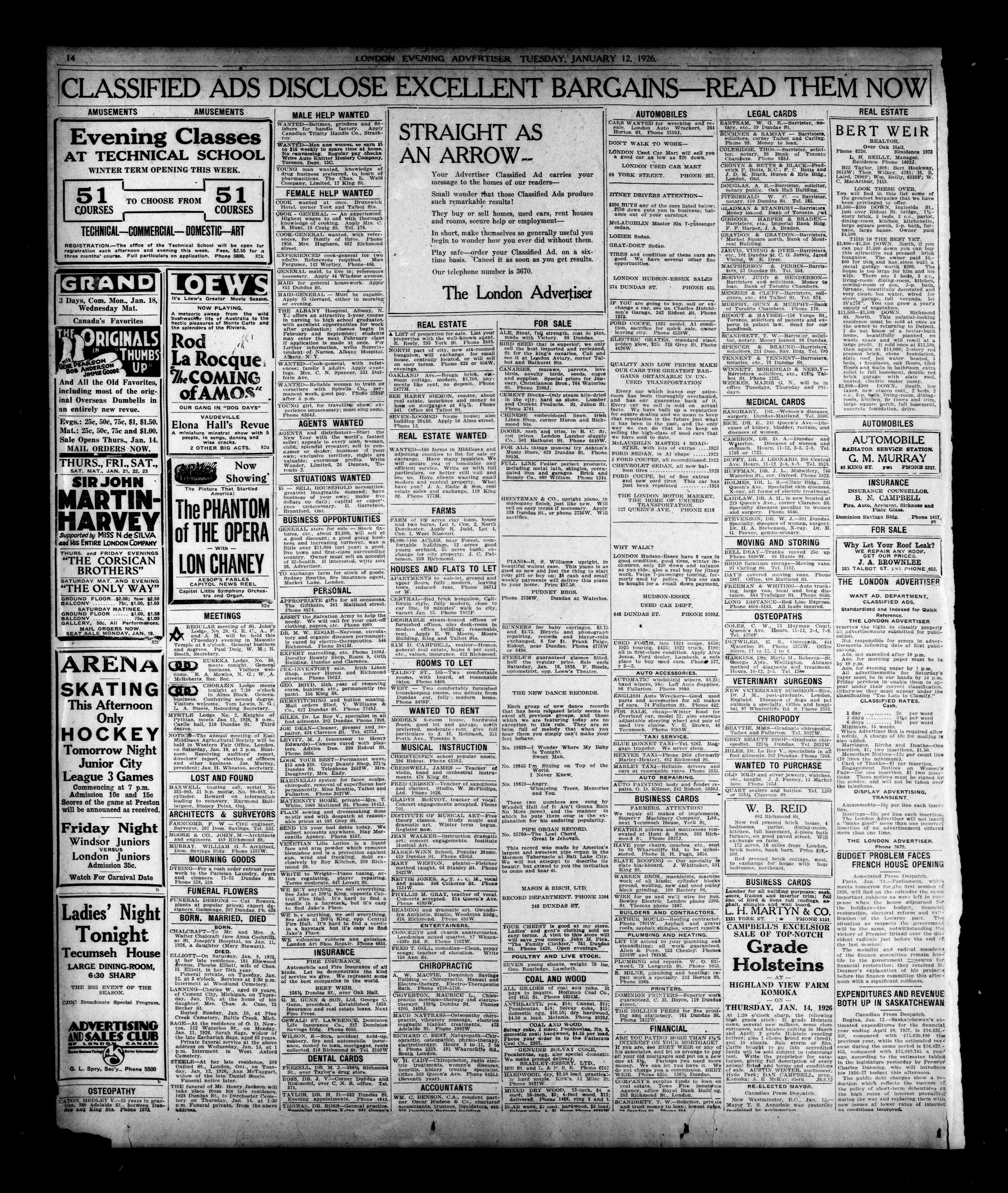 London Evening Advertiser. : London evening advertiser : 62nd Year, No. 24483 (January 12, 1926)