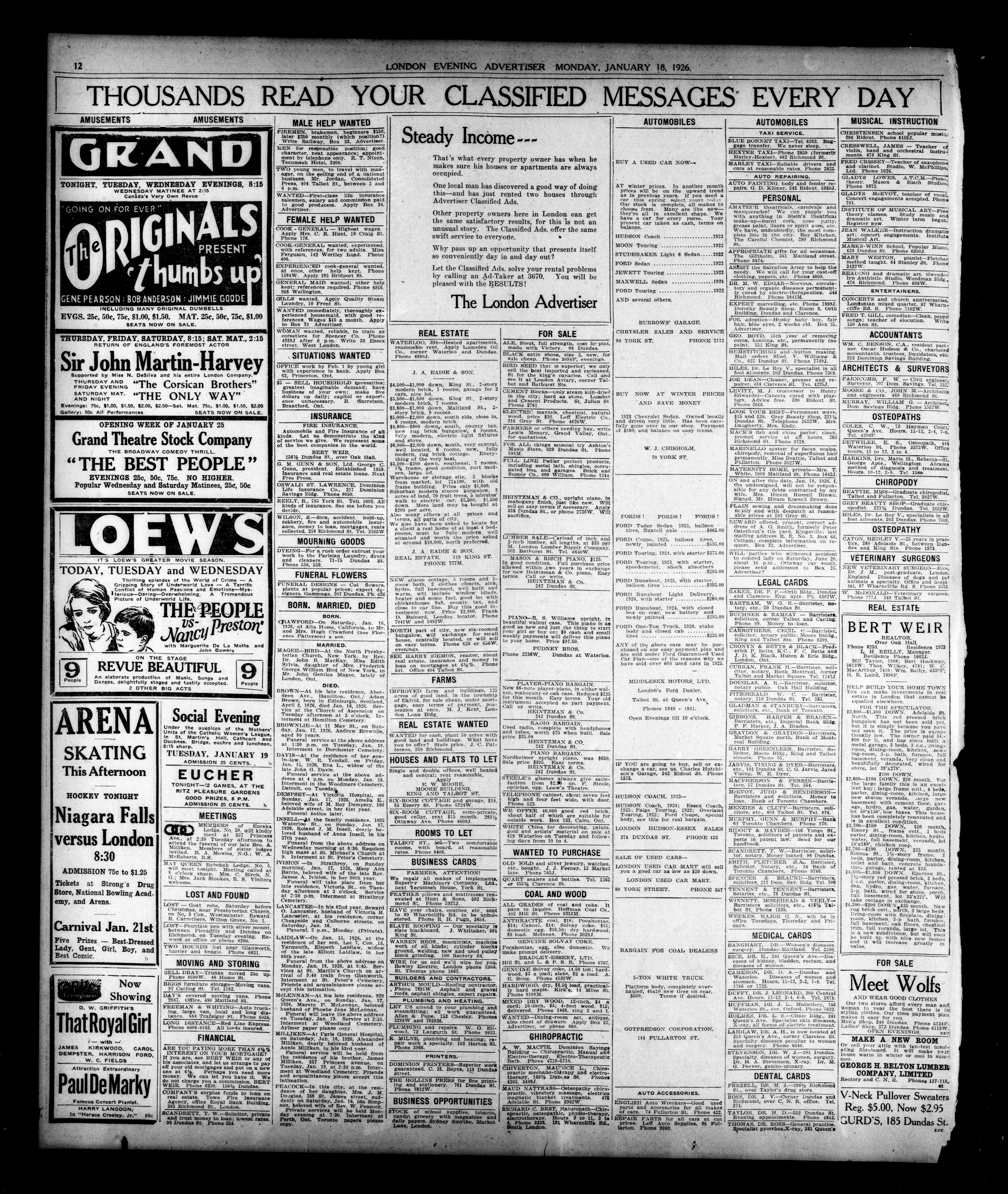 Aide London, Ontario : London Advertiser Company, Limited, [1926]; 14 images, 0 avec recherche en texte intégral
