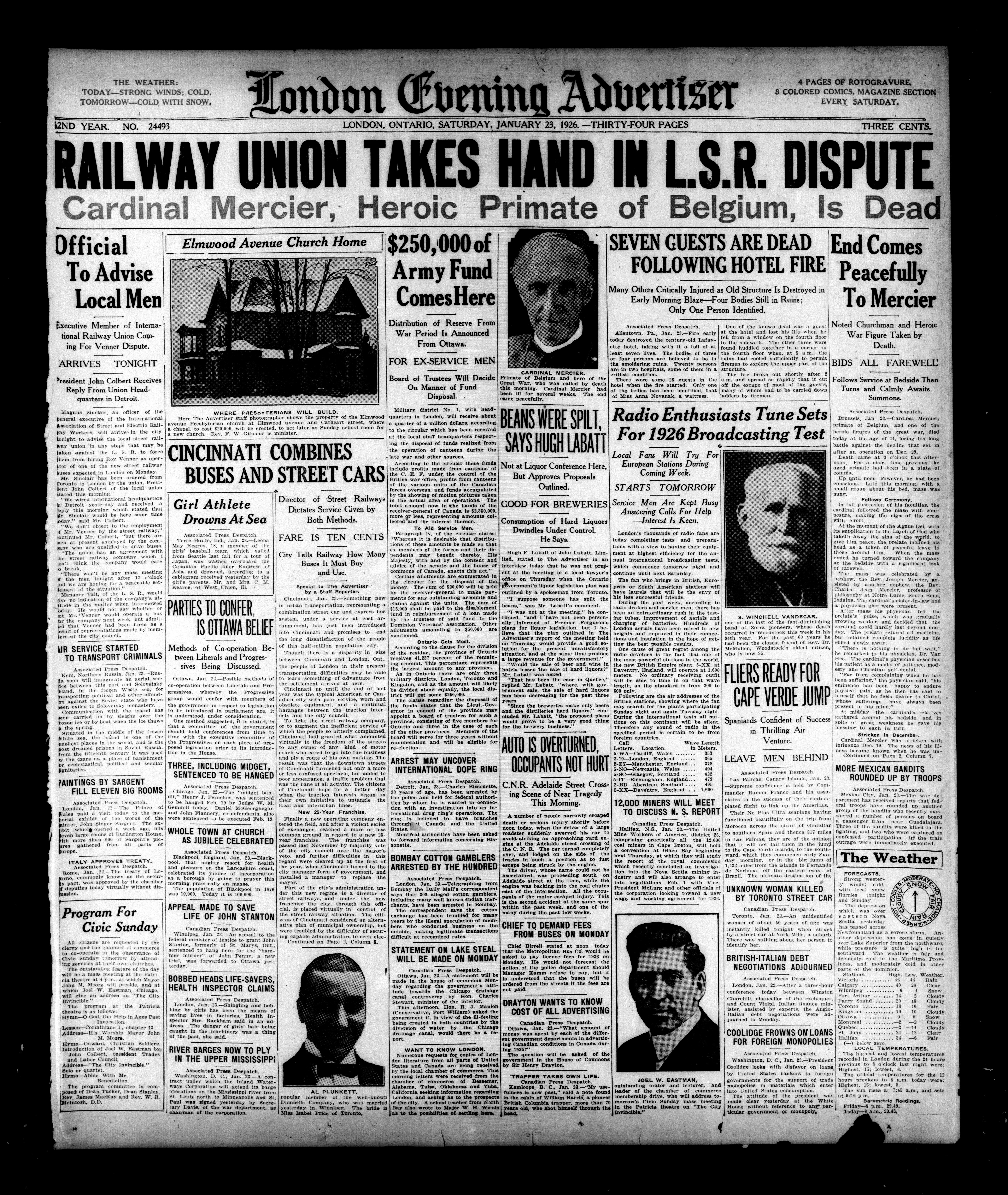 London Evening Advertiser. : London evening advertiser : 62nd Year, No. 24493 (January 23, 1926)