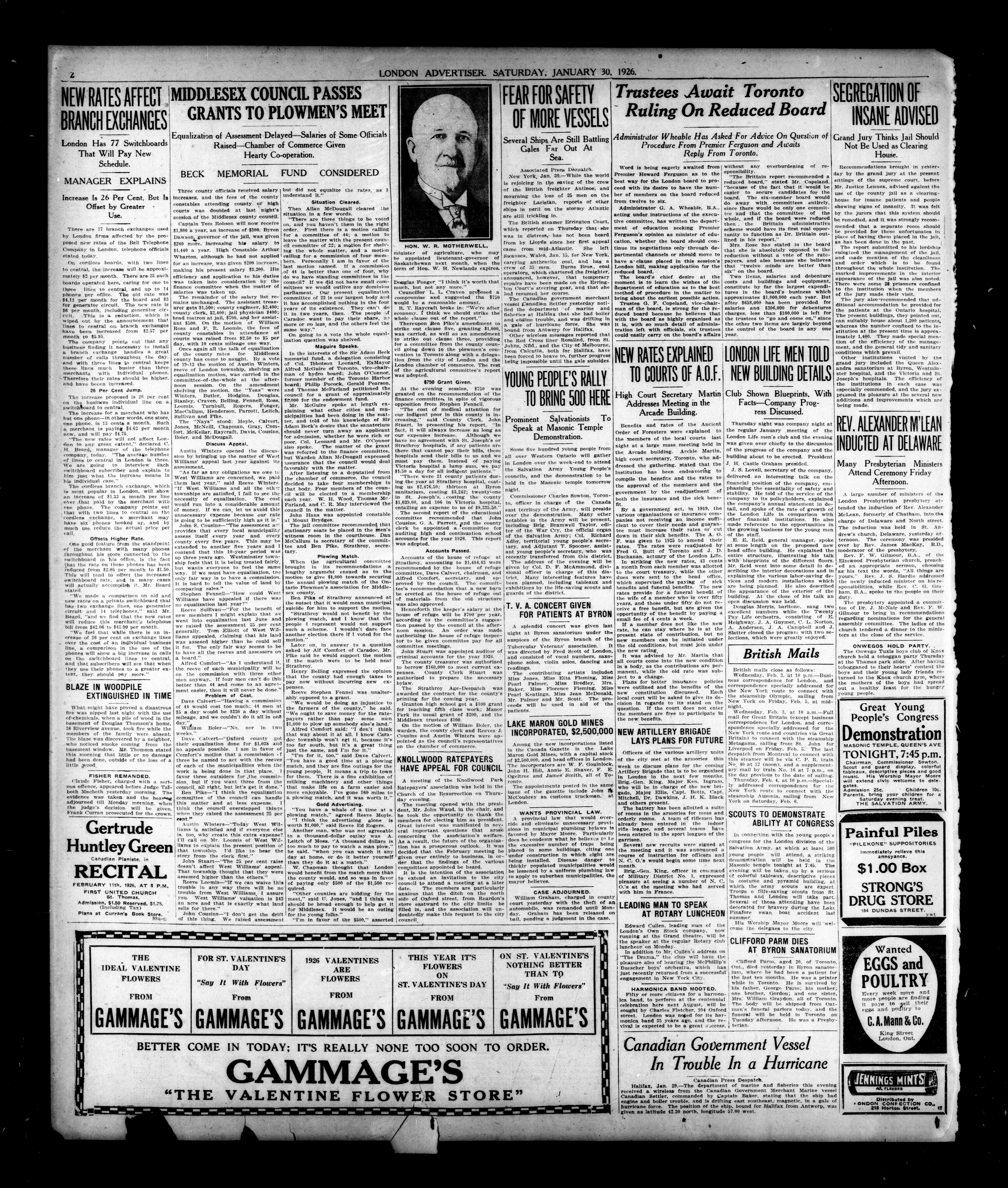 London, Ontario : London Advertiser Company, Limited, [1926]; 24 images, 0 avec recherche en texte intégral
