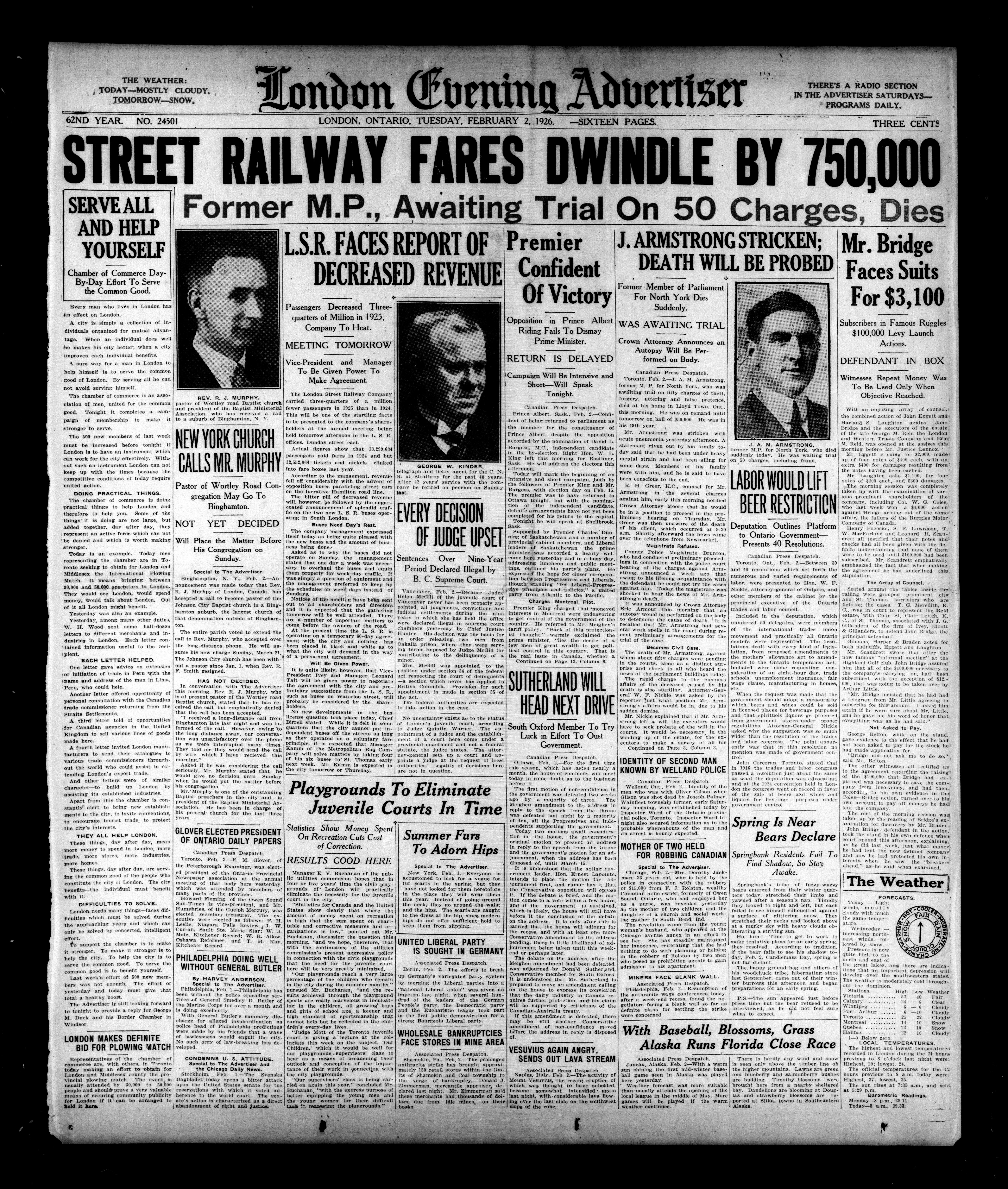 London Evening Advertiser. : London evening advertiser : 62nd Year, No. 24501 (February 2, 1926)