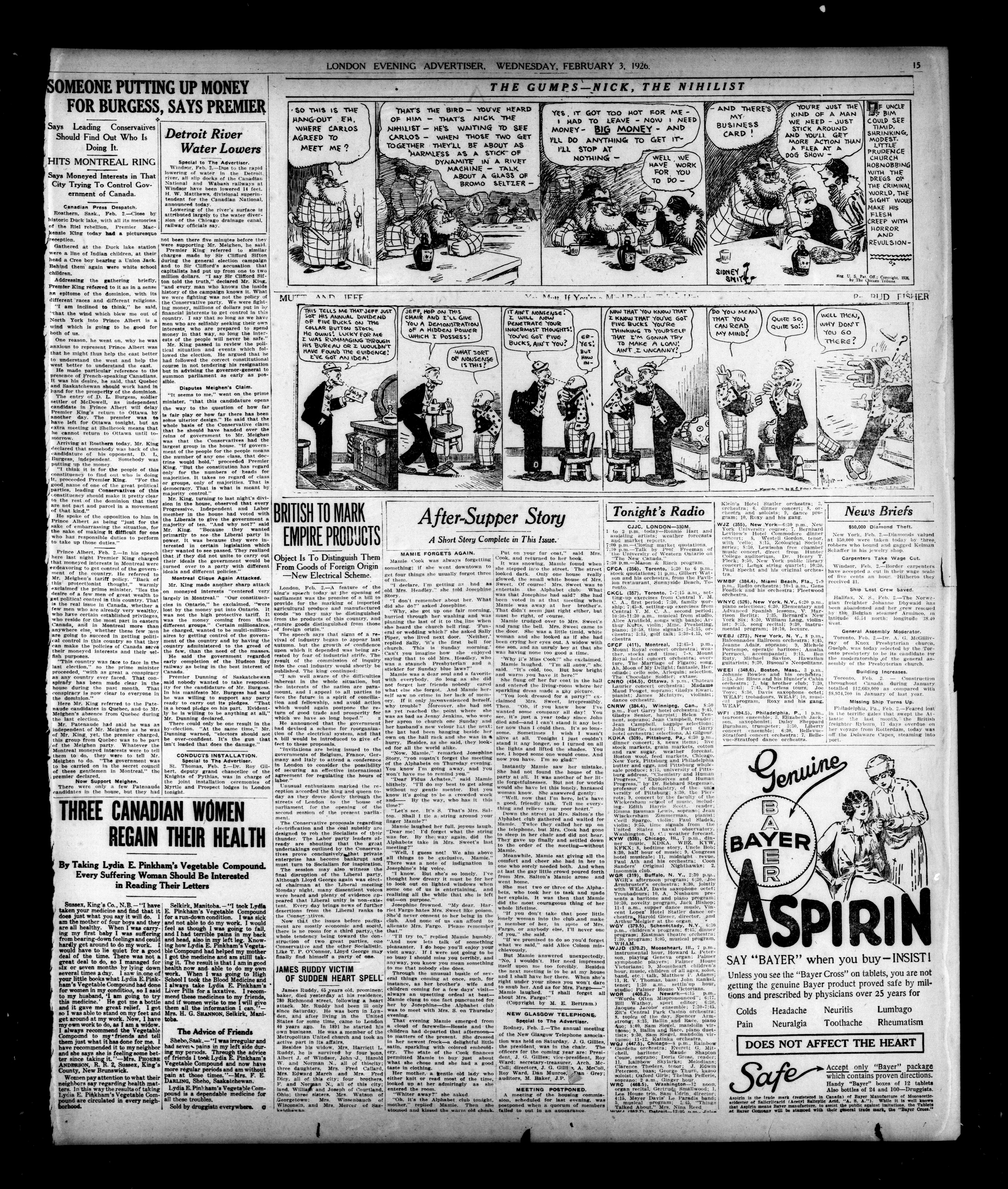 London, Ontario : London Advertiser Company, Limited, [1926]; 16 images, 0 avec recherche en texte intégral