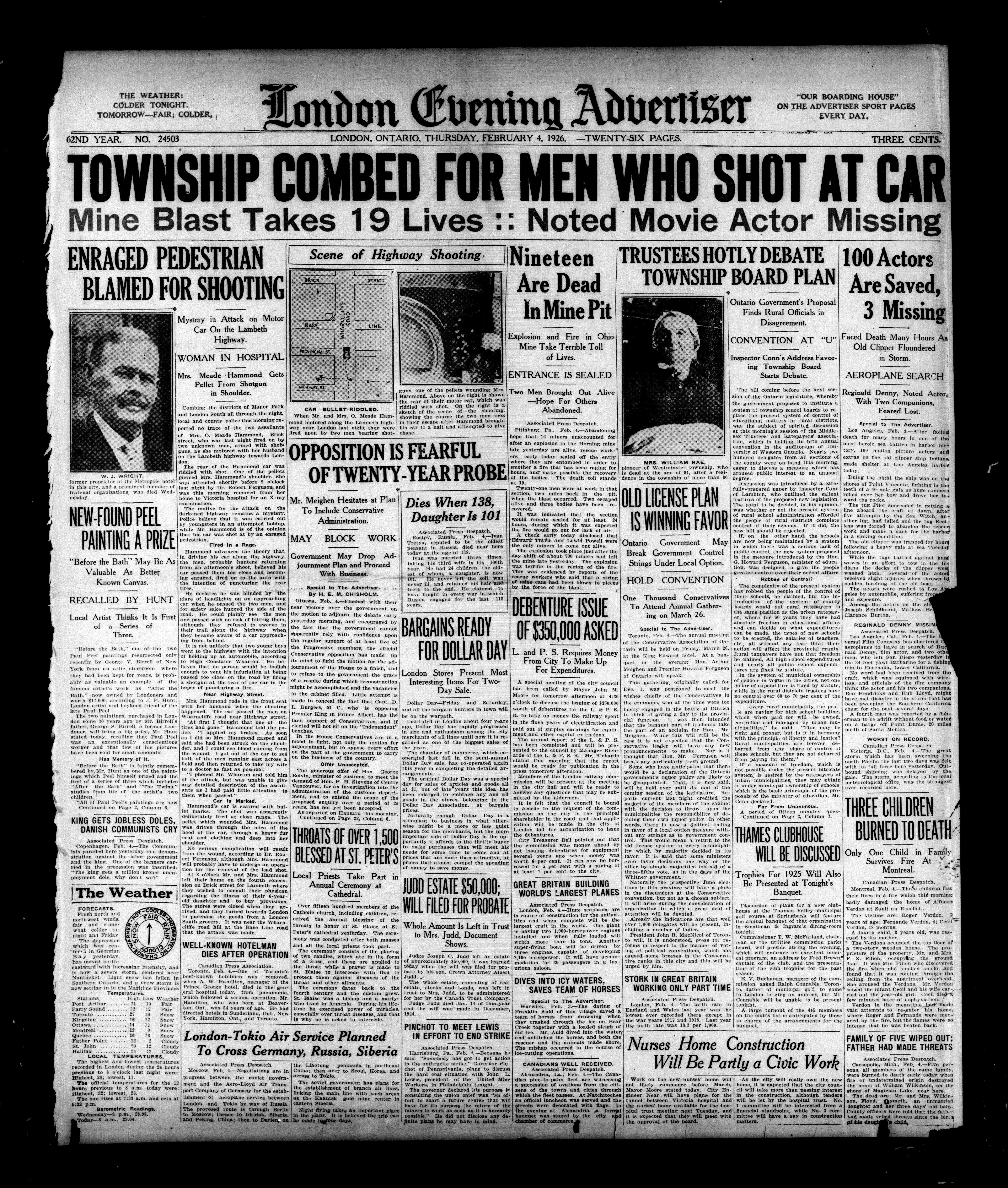 London, Ontario : London Advertiser Company, Limited, [1926]; 26 images, 0 avec recherche en texte intégral