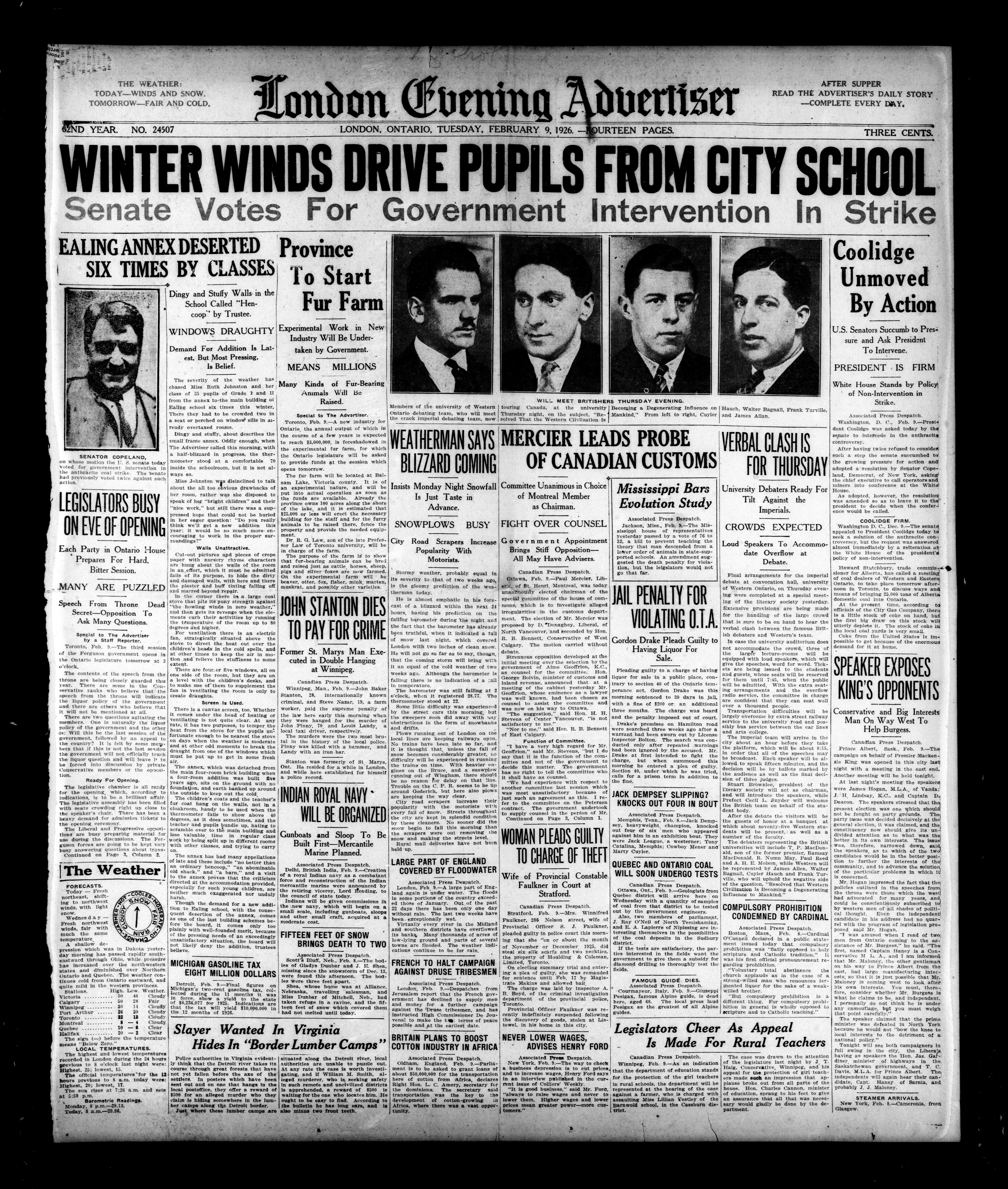 London evening advertiser : 62nd Year, No. 24507 (February 9, 1926) - Adresse bibliographique