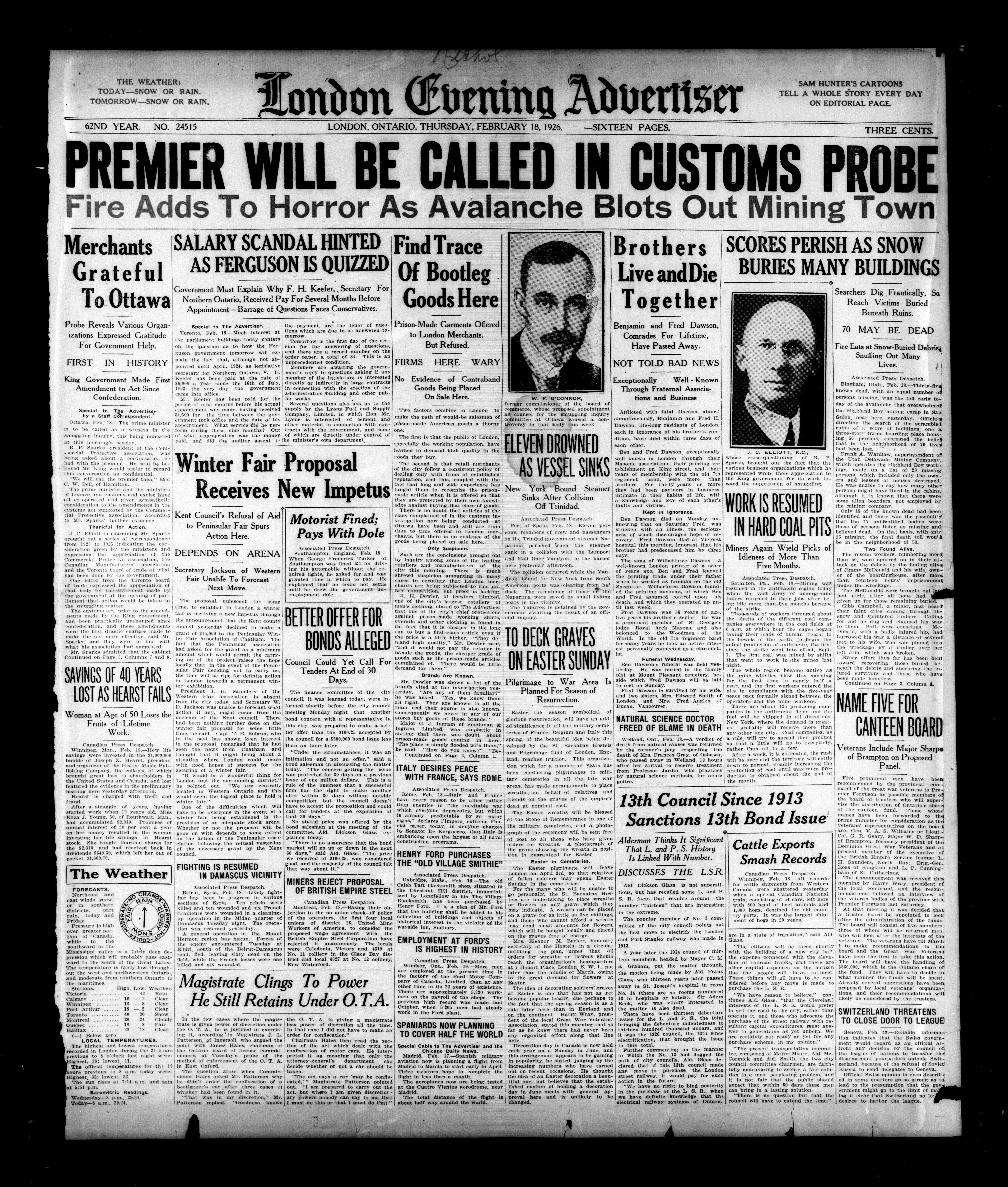 London, Ontario : London Advertiser Company, Limited, [1926]; 16 images, 0 avec recherche en texte intégral