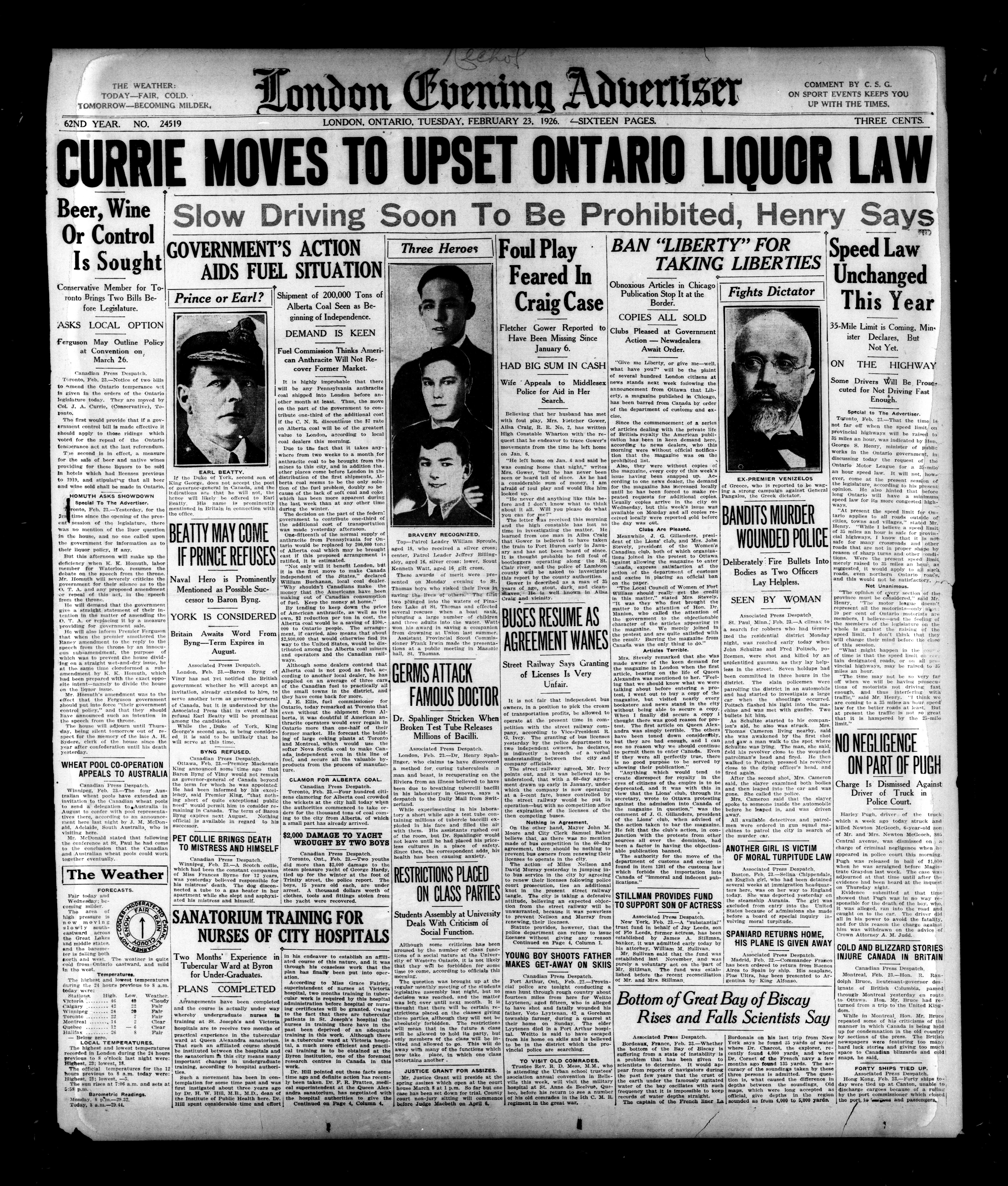 London, Ontario : London Advertiser Company, Limited, [1926]; 16 images, 0 avec recherche en texte intégral