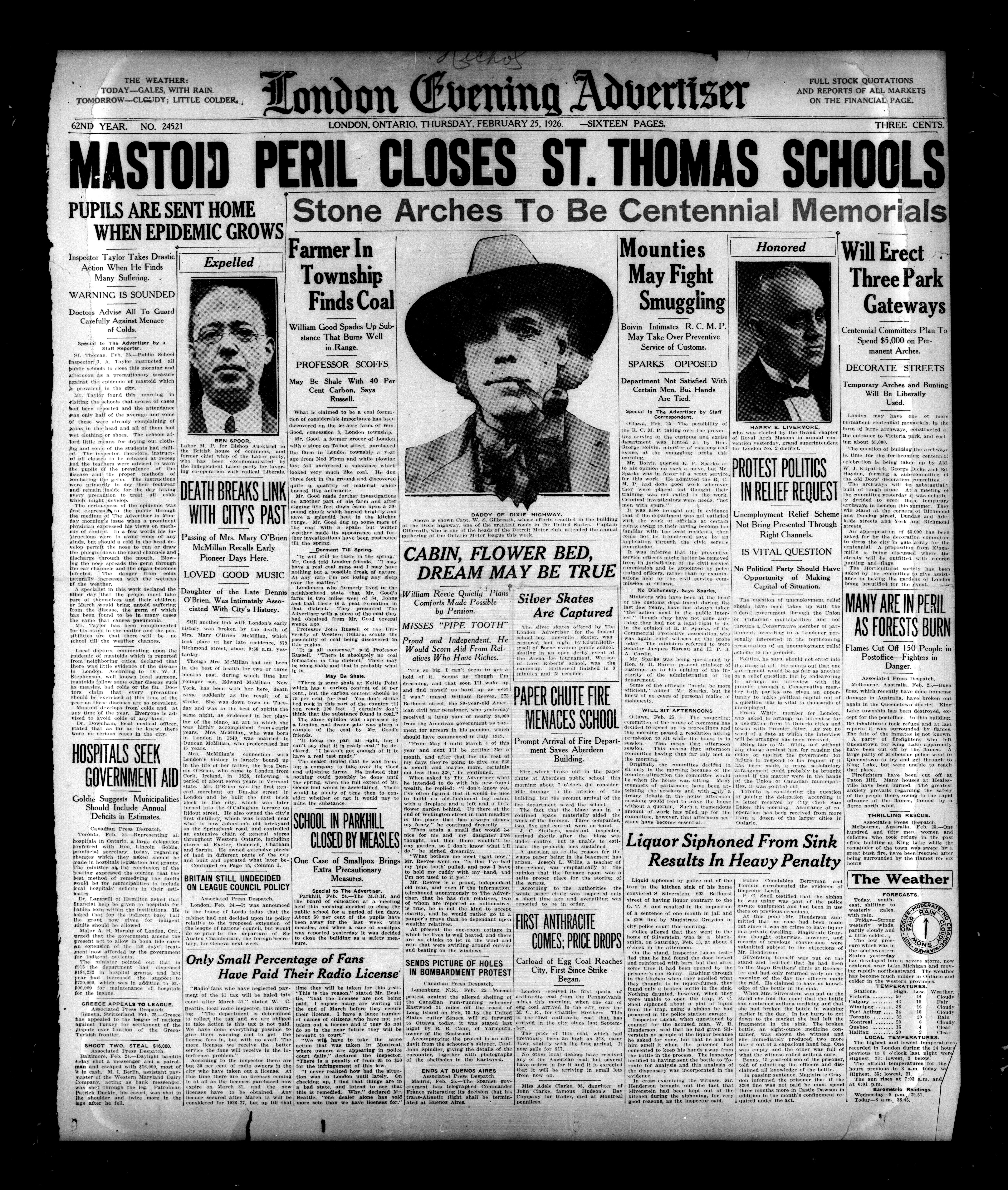 London, Ontario : London Advertiser Company, Limited, [1926]; 16 images, 0 avec recherche en texte intégral