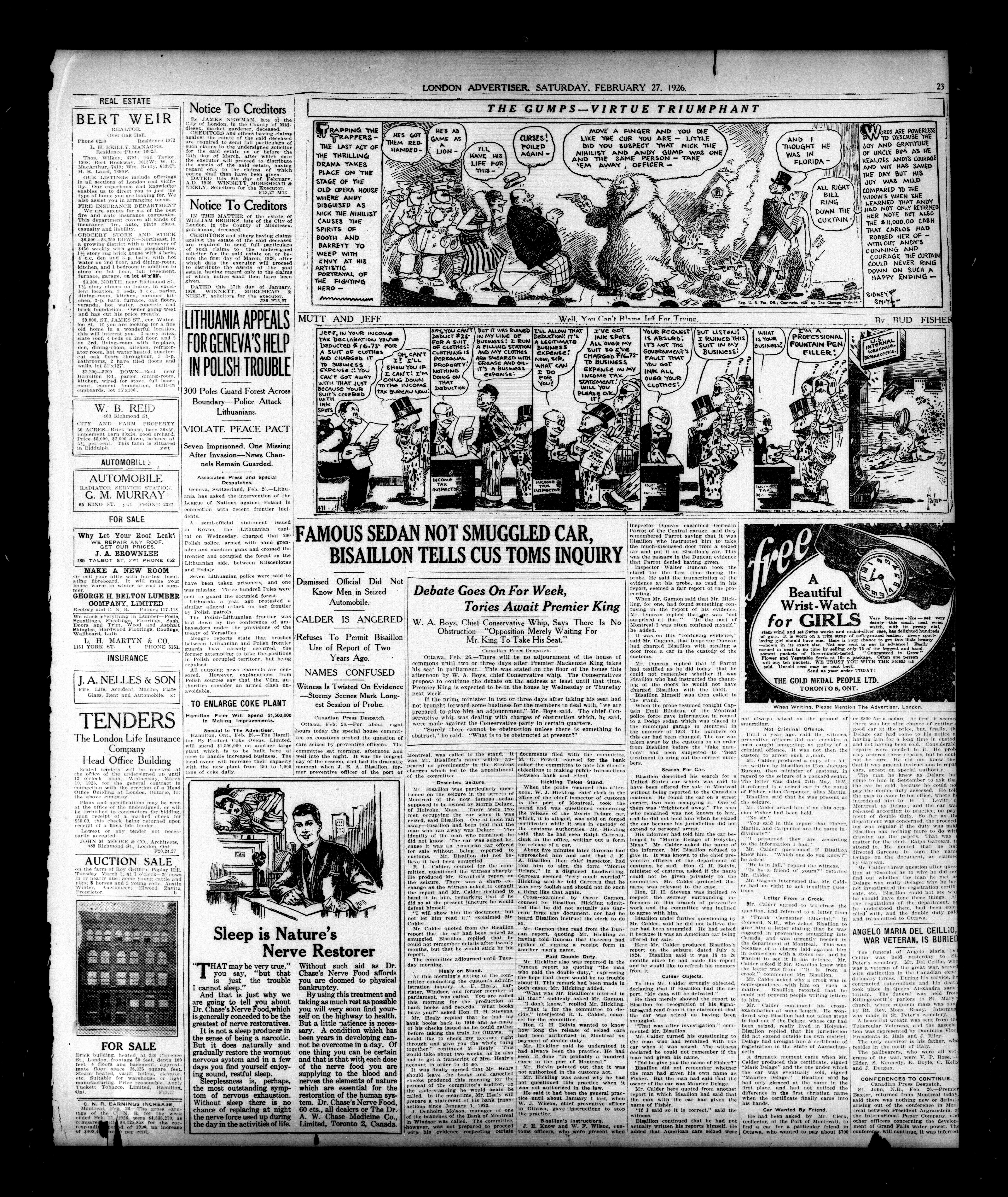 London evening advertiser : 62nd Year, No. 24523 (February 27, 1926)