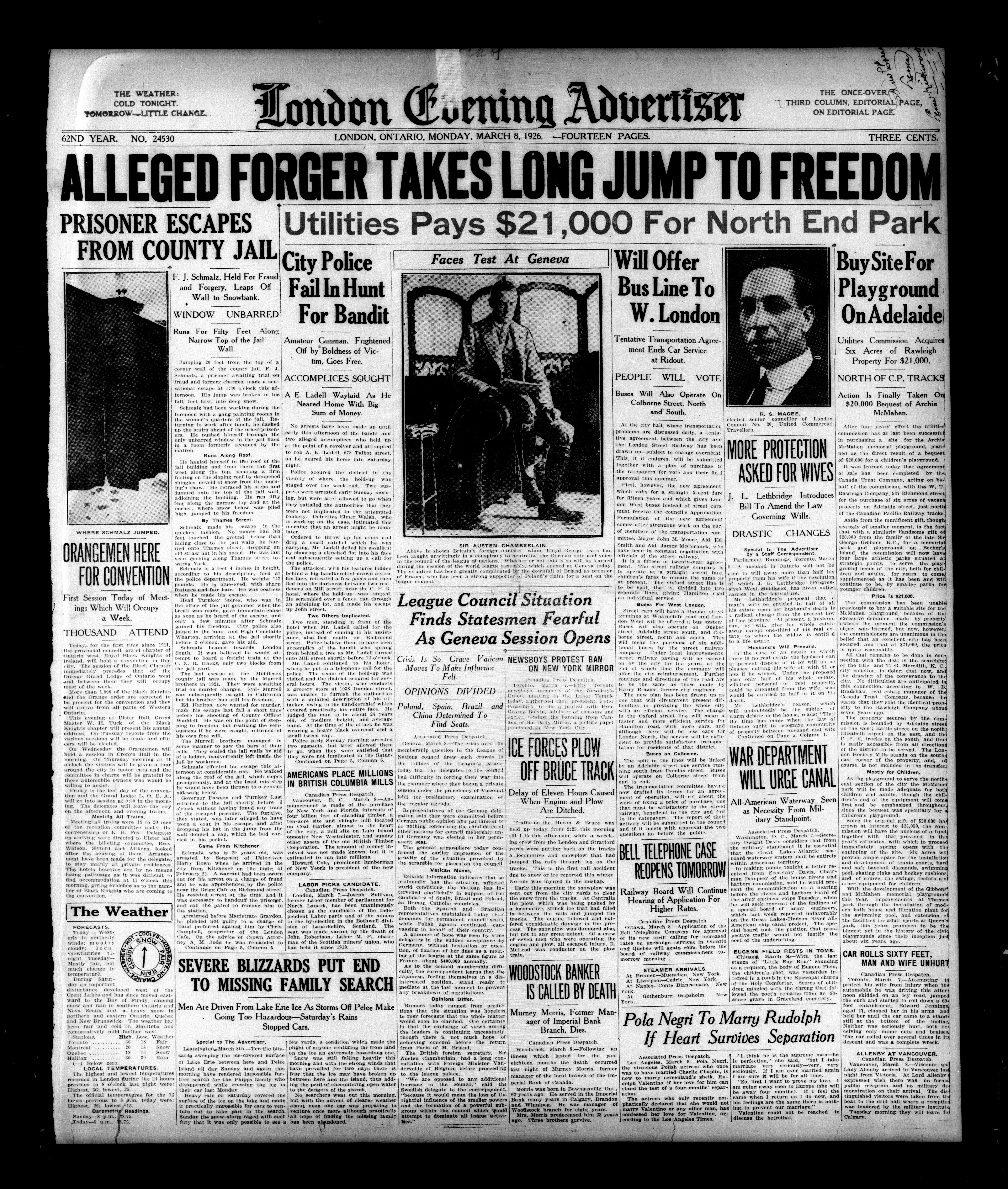 London, Ontario : London Advertiser Company, Limited, [1926]; 14 images, 0 avec recherche en texte intégral