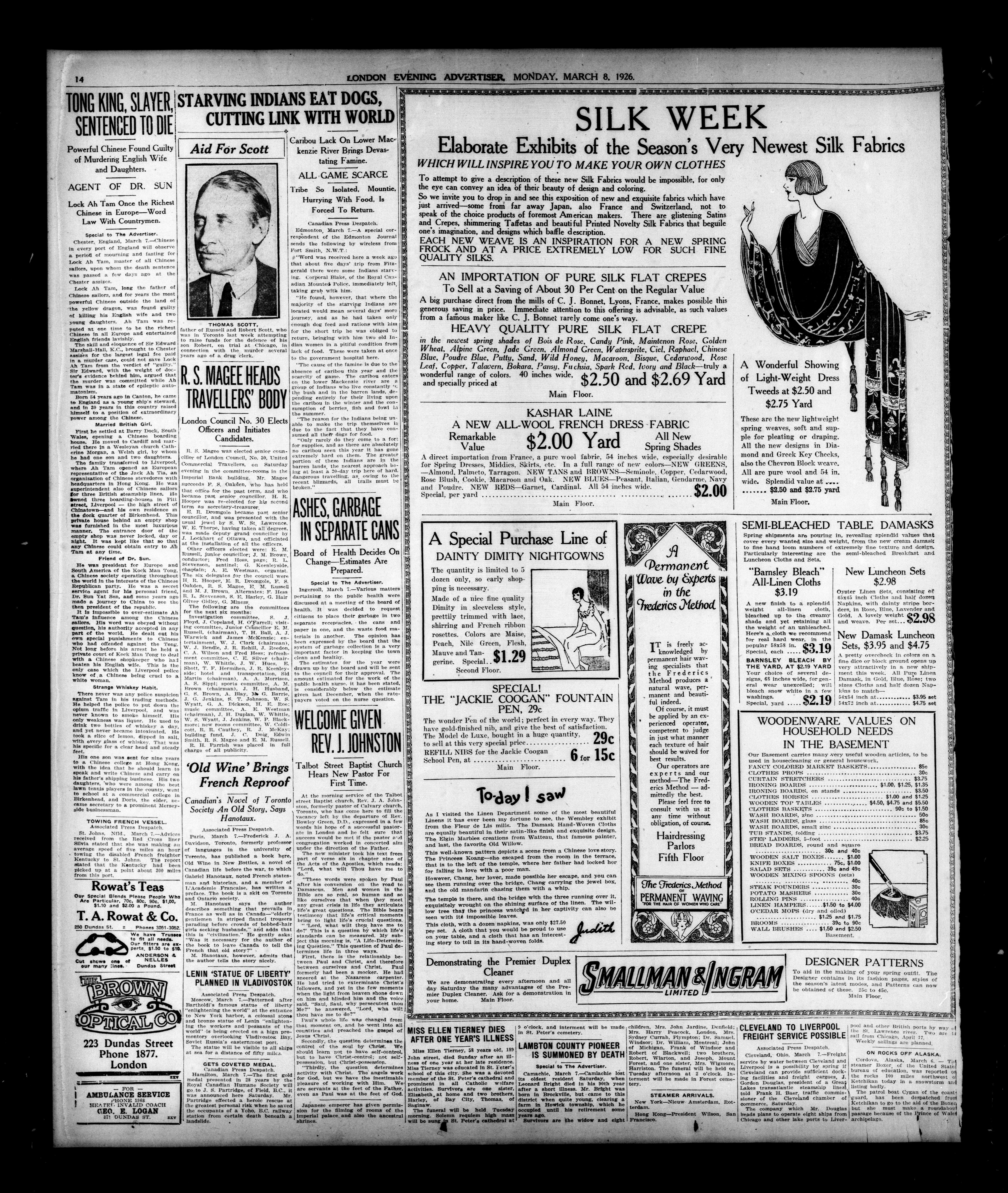 London, Ontario : London Advertiser Company, Limited, [1926]; 14 images, 0 avec recherche en texte intégral