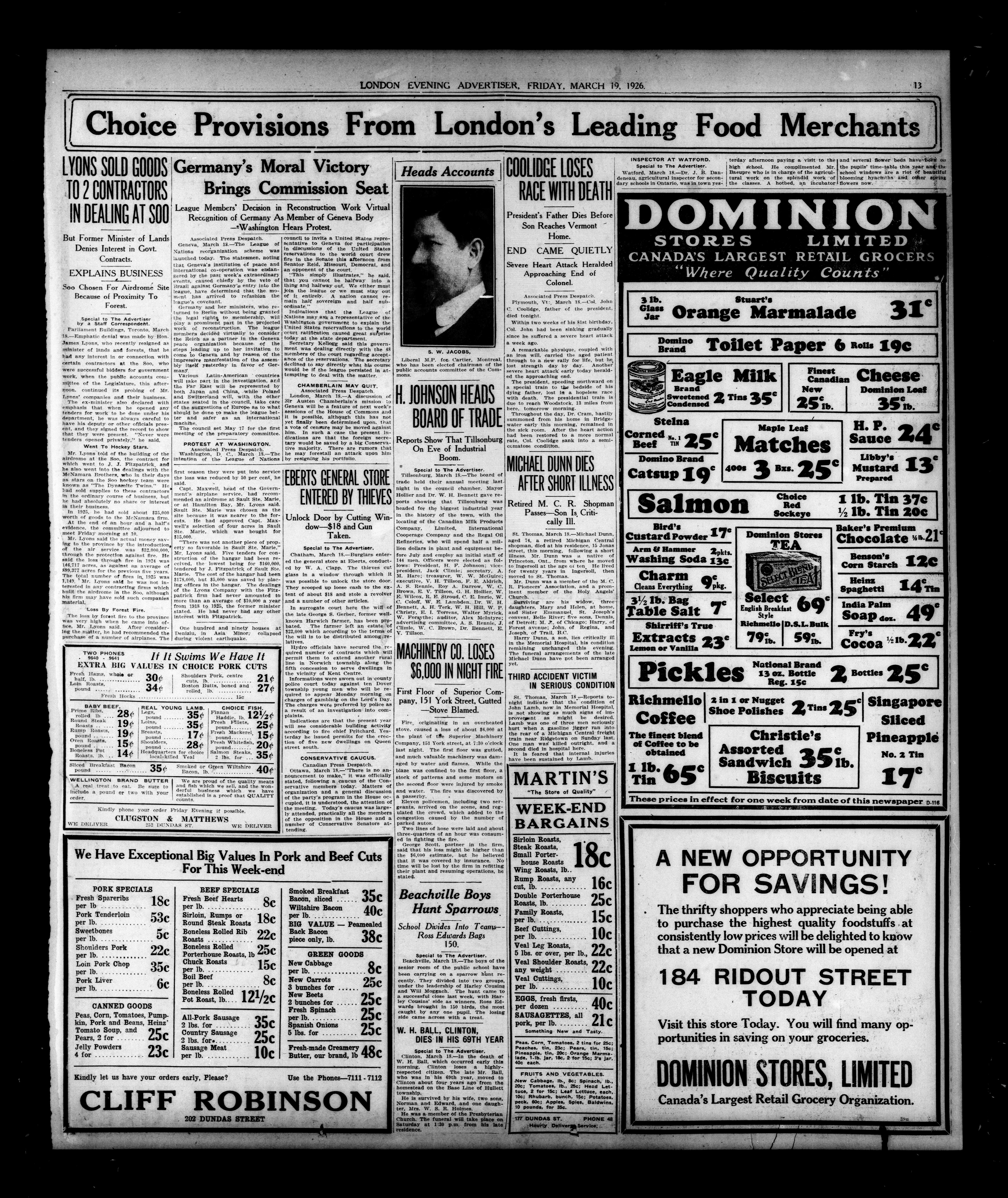 London, Ontario : London Advertiser Company, Limited, [1926]; 20 images, 0 avec recherche en texte intégral