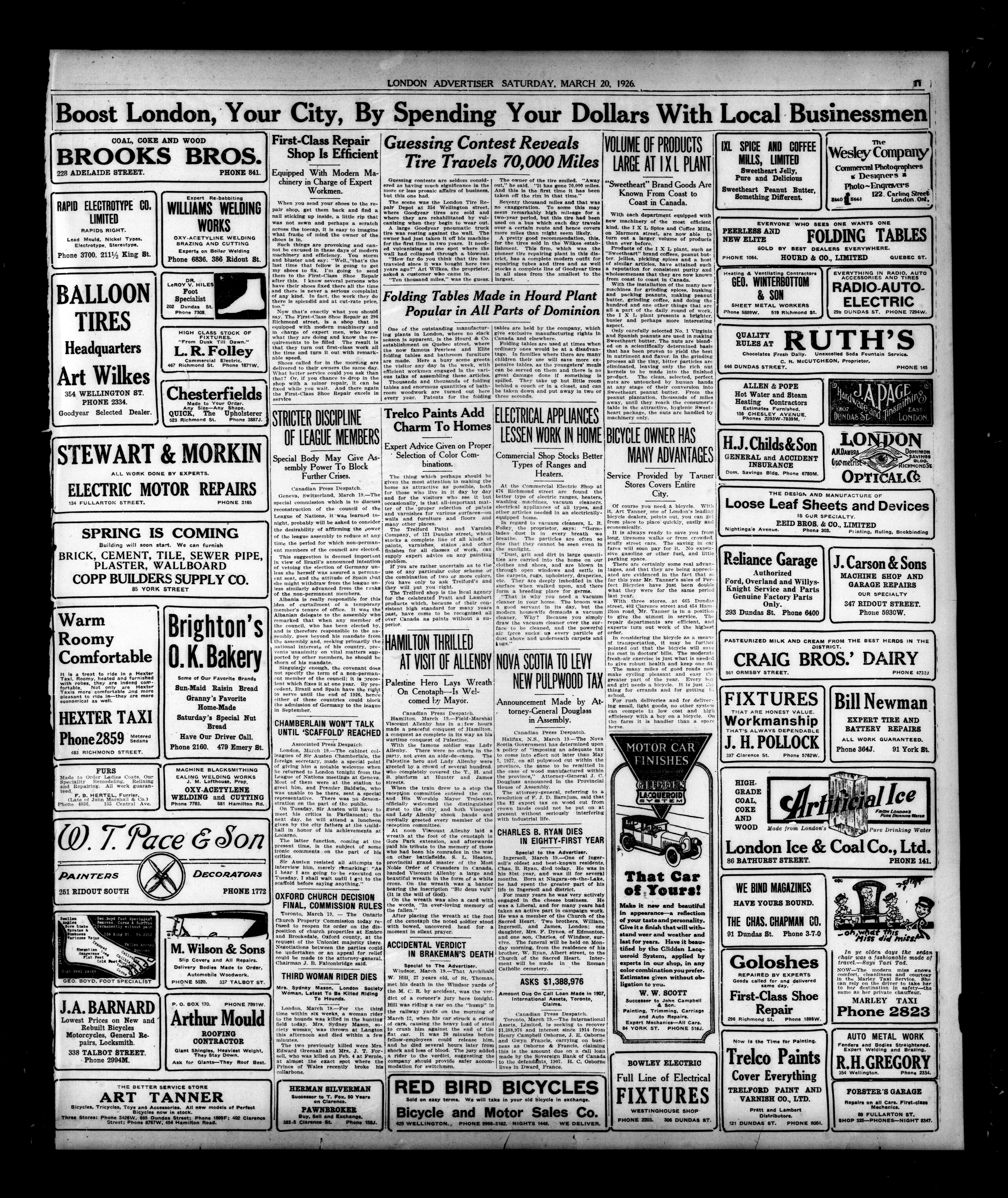 London Evening Advertiser. : London evening advertiser : 62nd Year, No. 24541 (March 20, 1926)