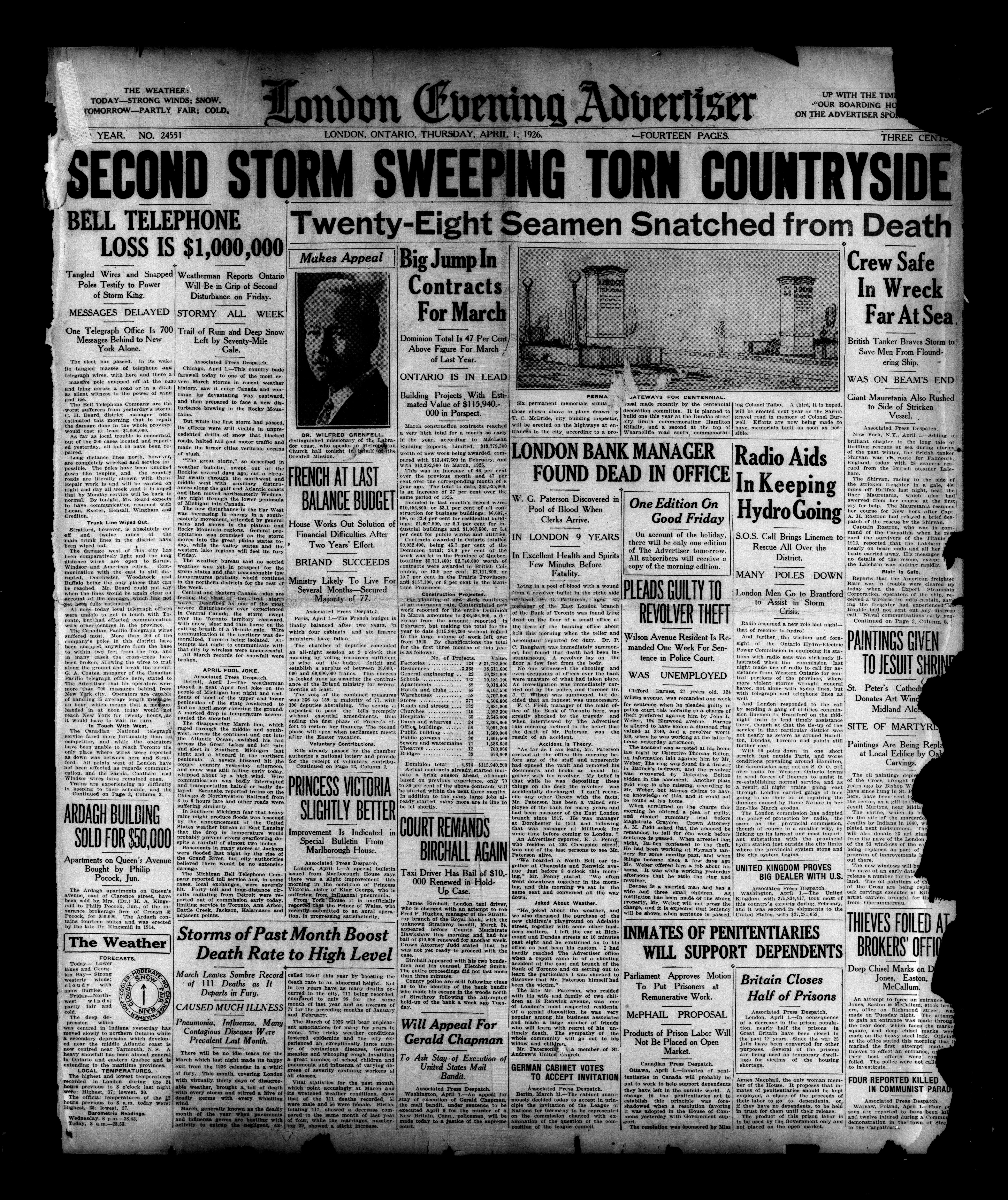 London, Ontario : London Advertiser Company, Limited, [1926]; 14 images, 0 avec recherche en texte intégral