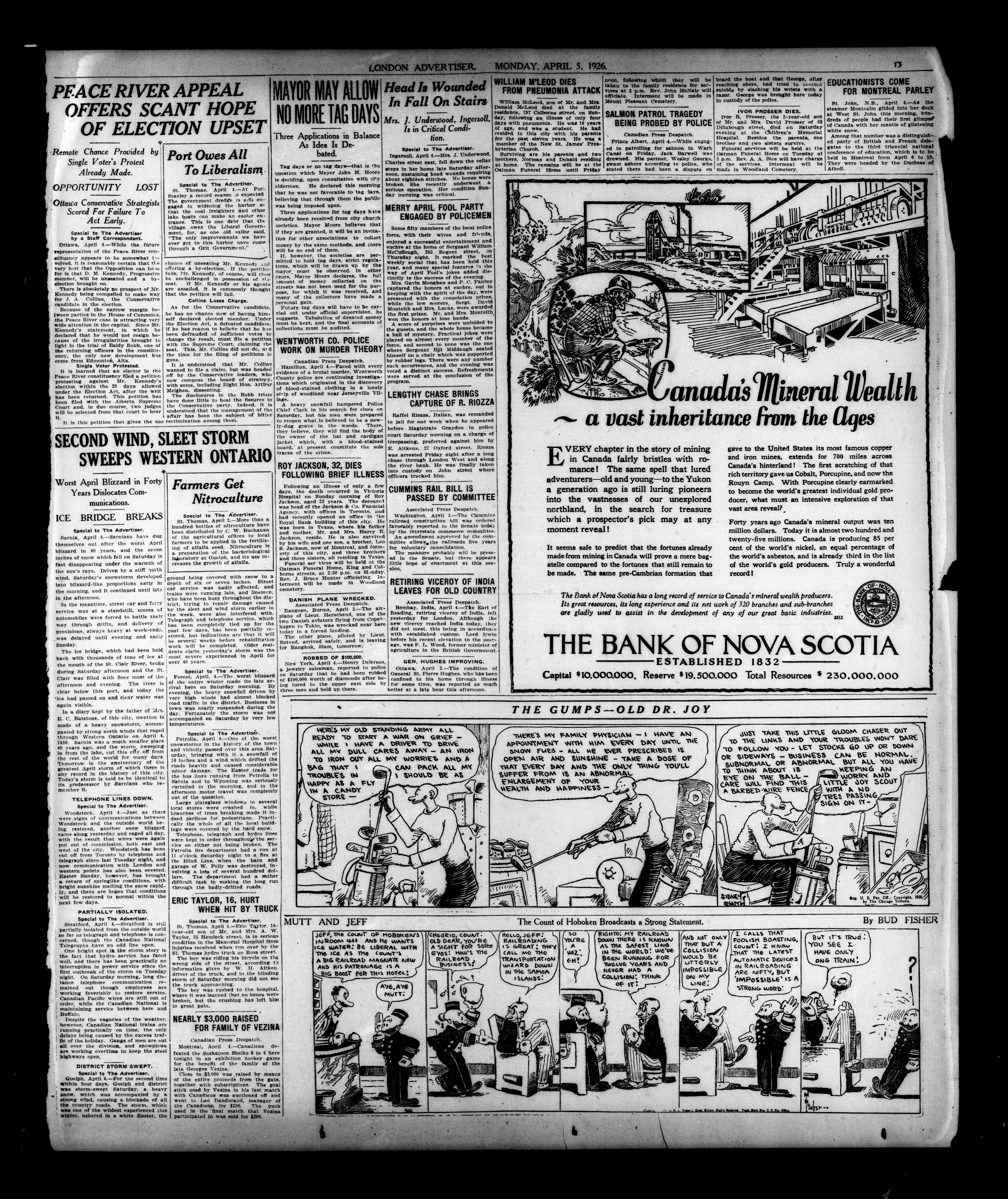 London, Ontario : London Advertiser Company, Limited, [1926]; 14 images, 0 avec recherche en texte intégral