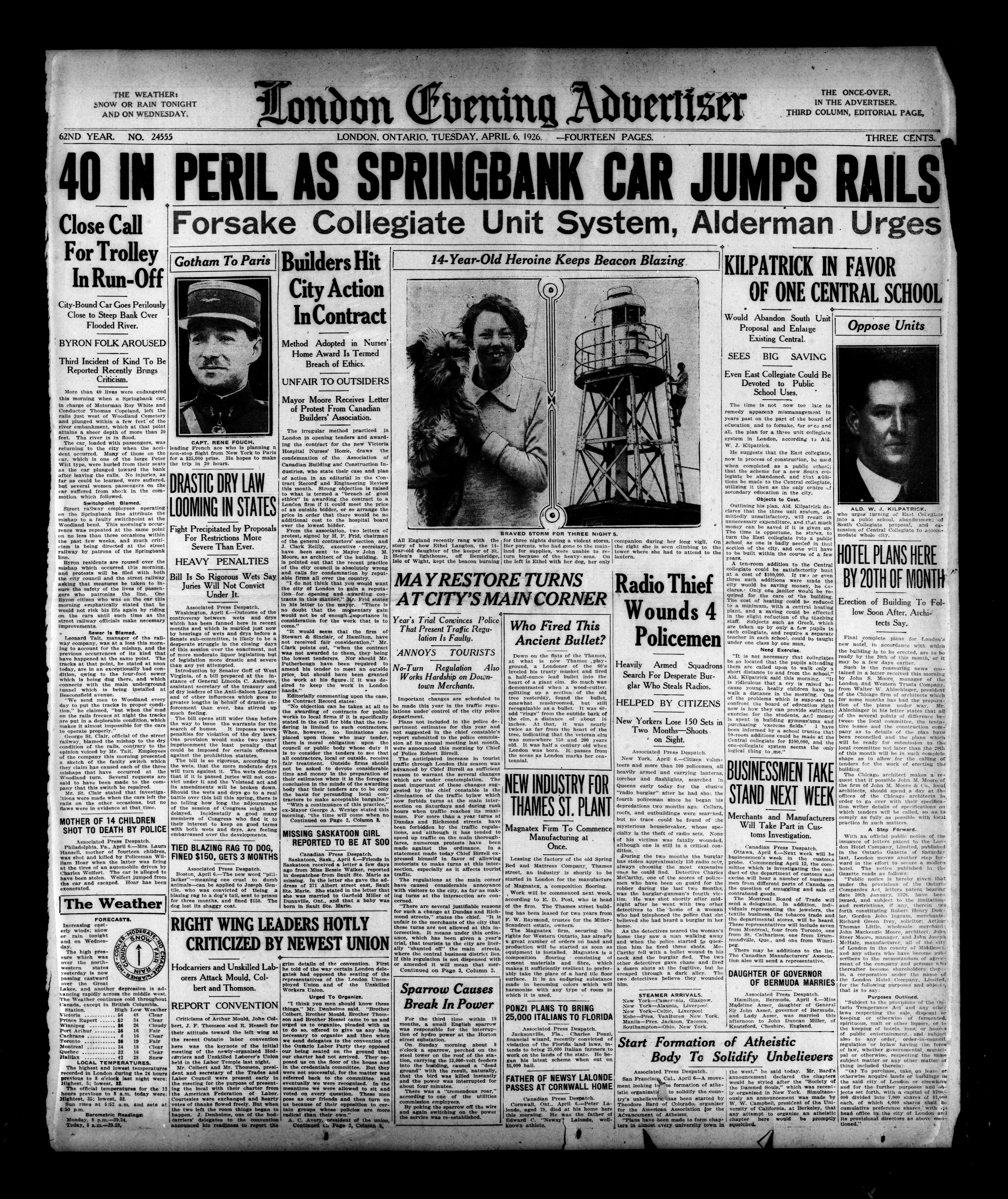 London, Ontario : London Advertiser Company, Limited, [1926]; 14 images, 0 avec recherche en texte intégral