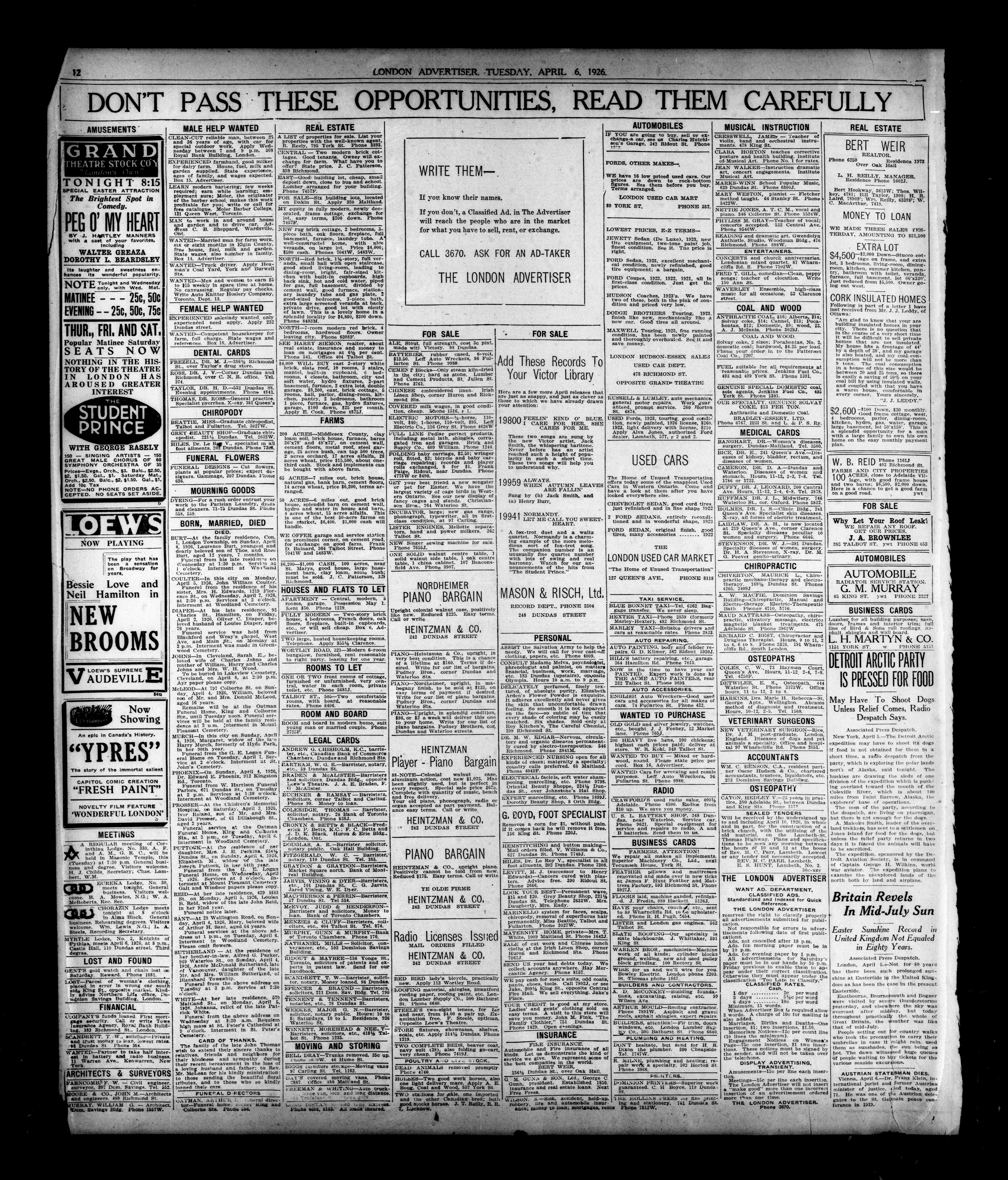 London, Ontario : London Advertiser Company, Limited, [1926]; 14 images, 0 avec recherche en texte intégral