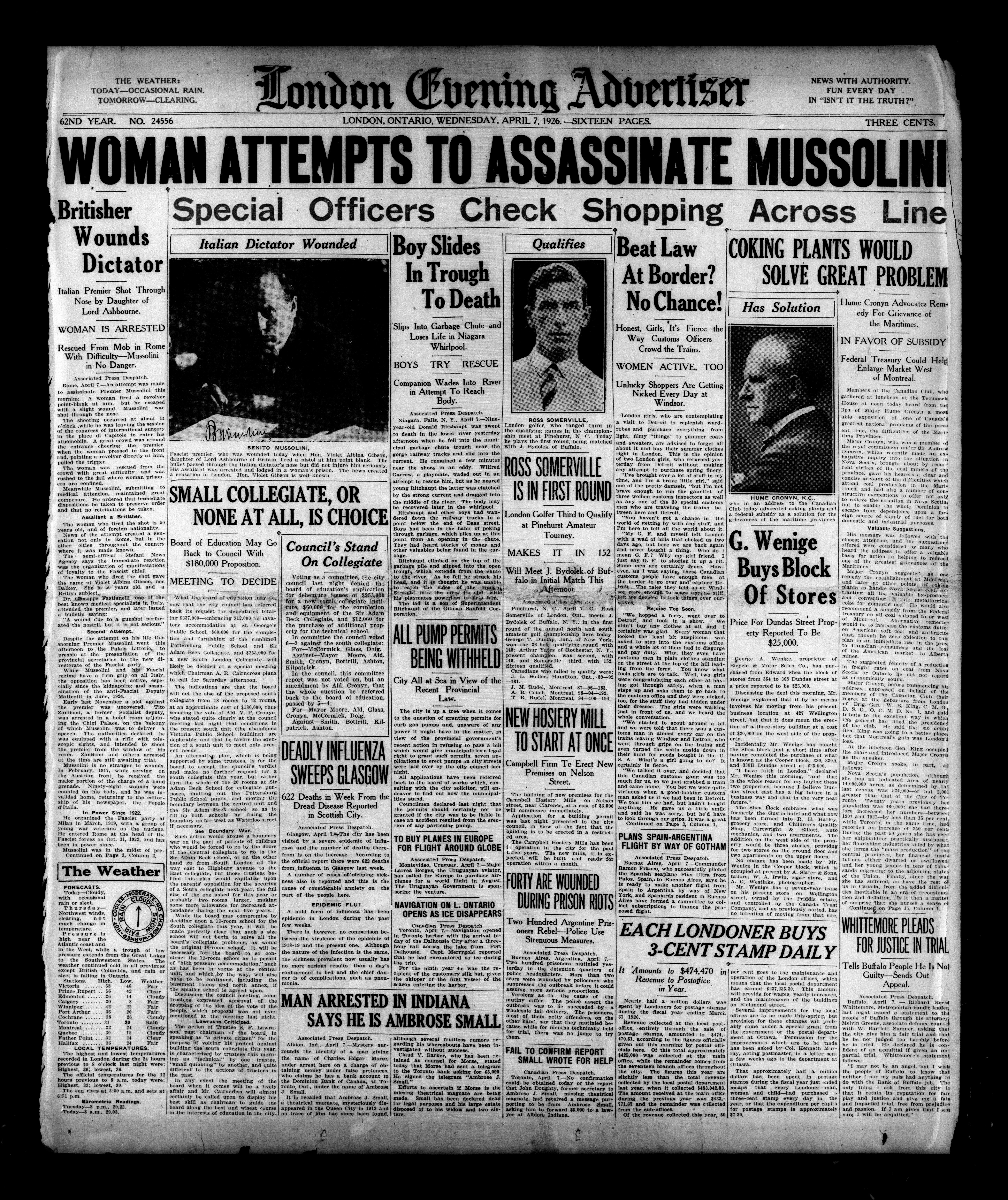London, Ontario : London Advertiser Company, Limited, [1926]; 16 images, 0 avec recherche en texte intégral