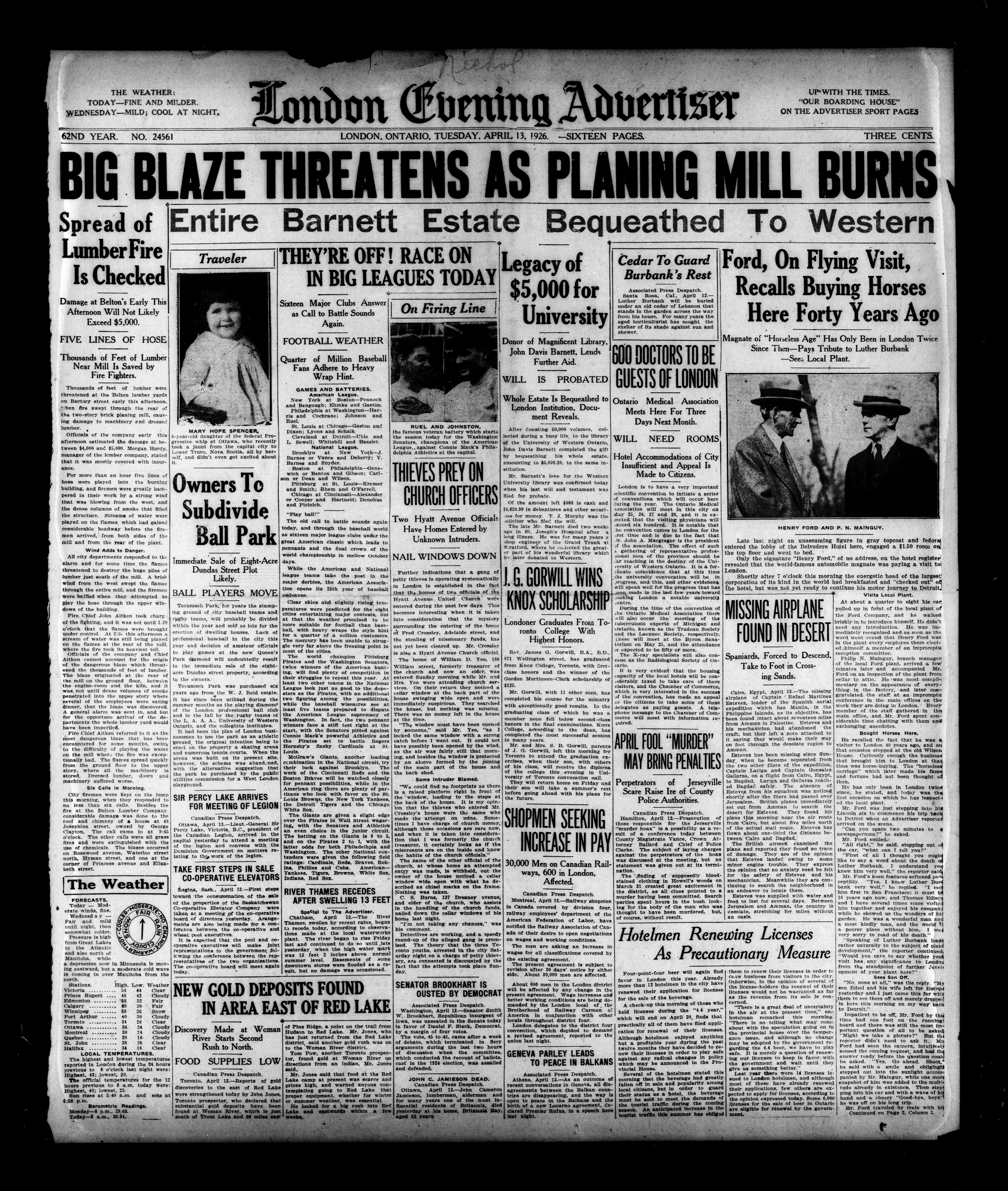London, Ontario : London Advertiser Company, Limited, [1926]; 16 images, 0 avec recherche en texte intégral