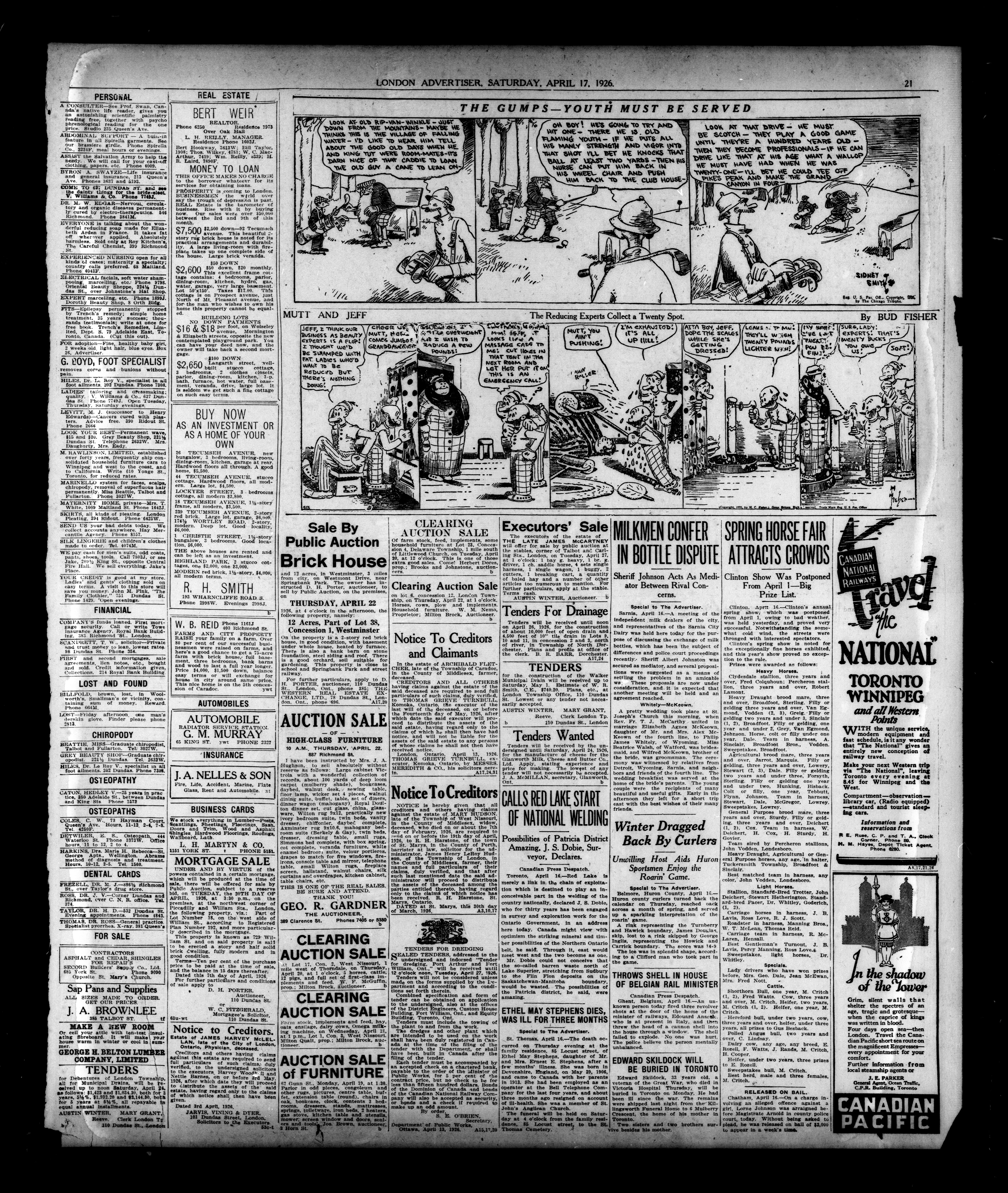 London, Ontario : London Advertiser Company, Limited, [1926]; 22 images, 0 avec recherche en texte intégral