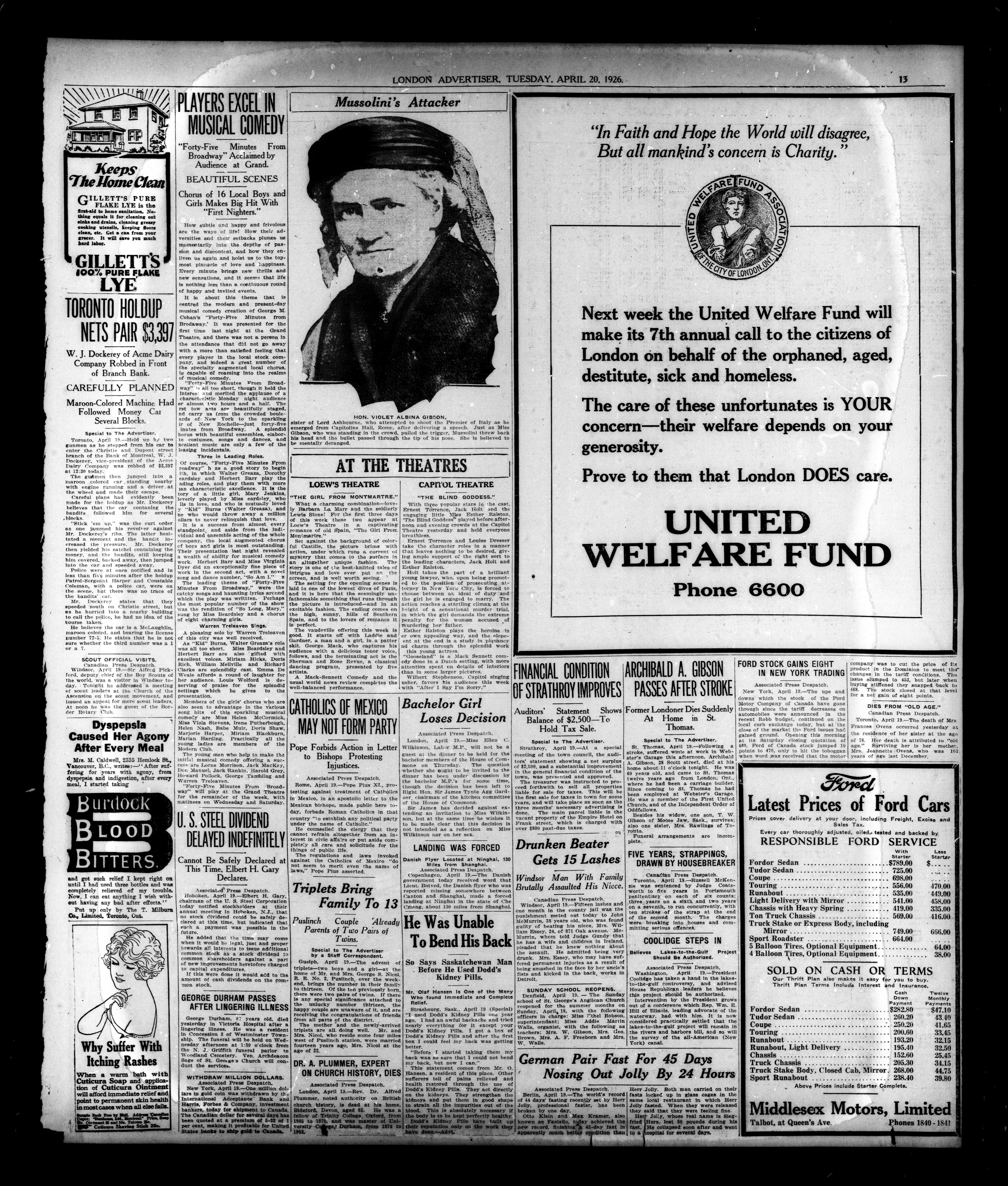 London, Ontario : London Advertiser Company, Limited, [1926]; 16 images, 0 with full-text search