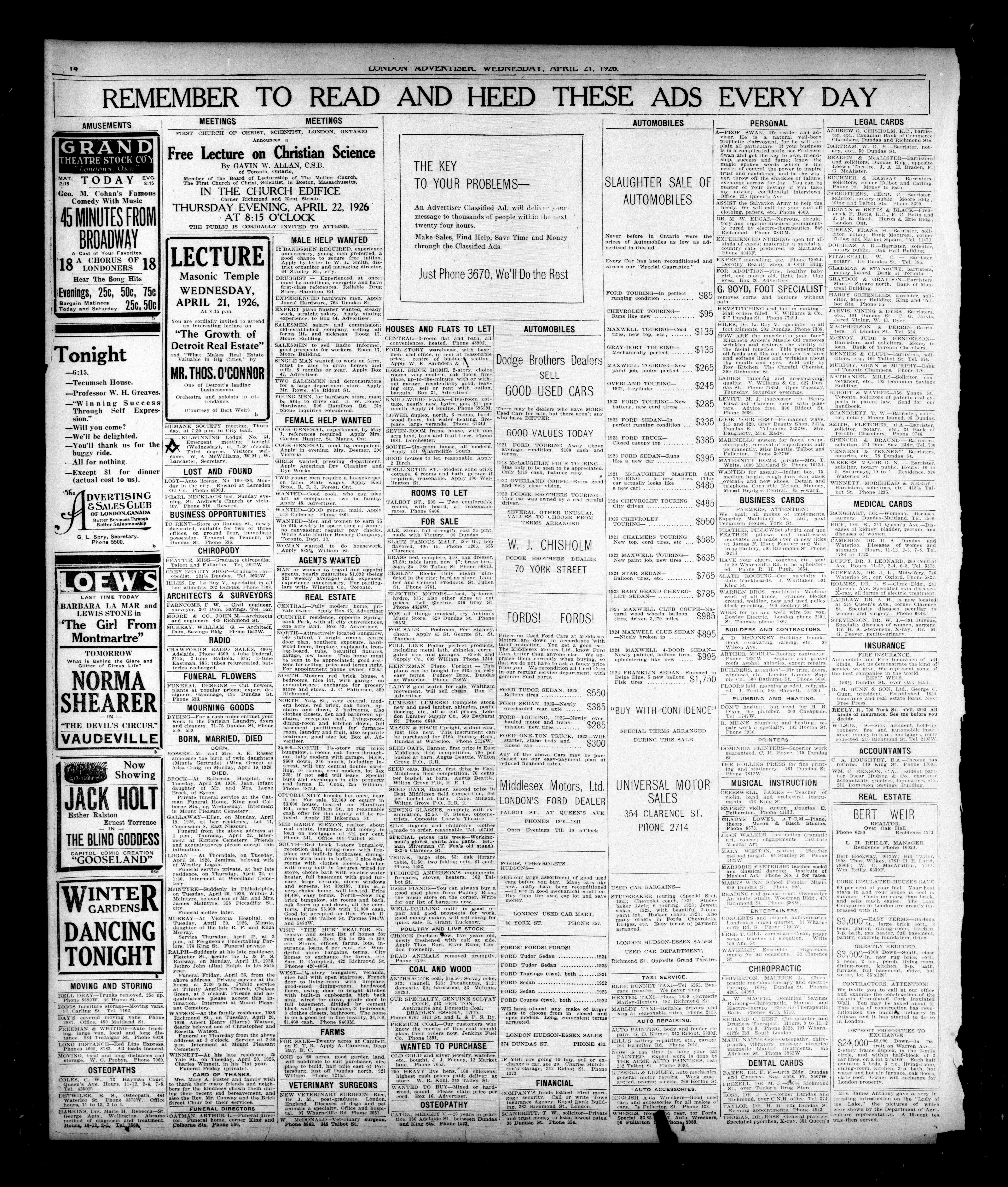 London, Ontario : London Advertiser Company, Limited, [1926]