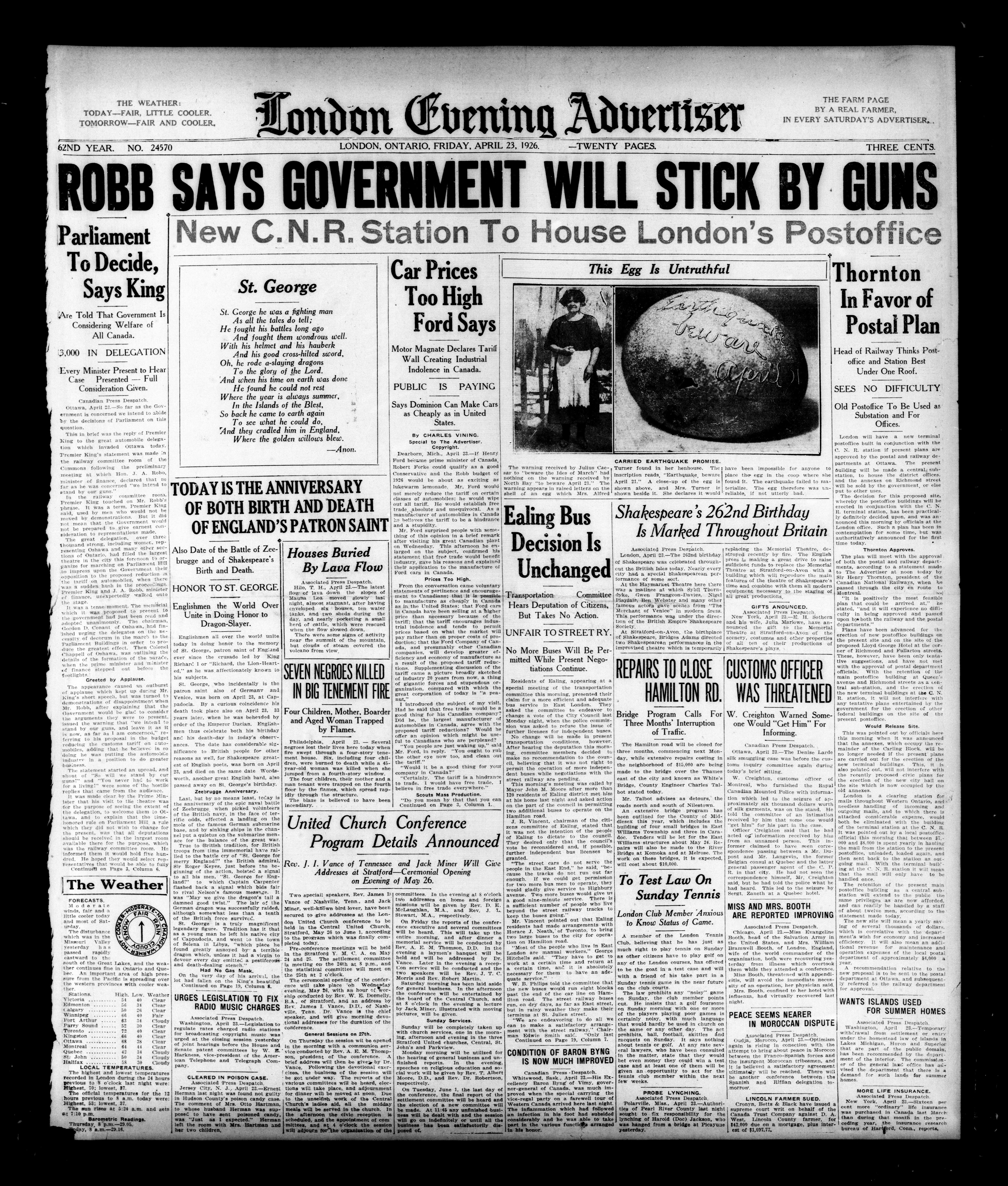 London Evening Advertiser. : London evening advertiser : 62nd Year, No. 24570 (April 23, 1926)