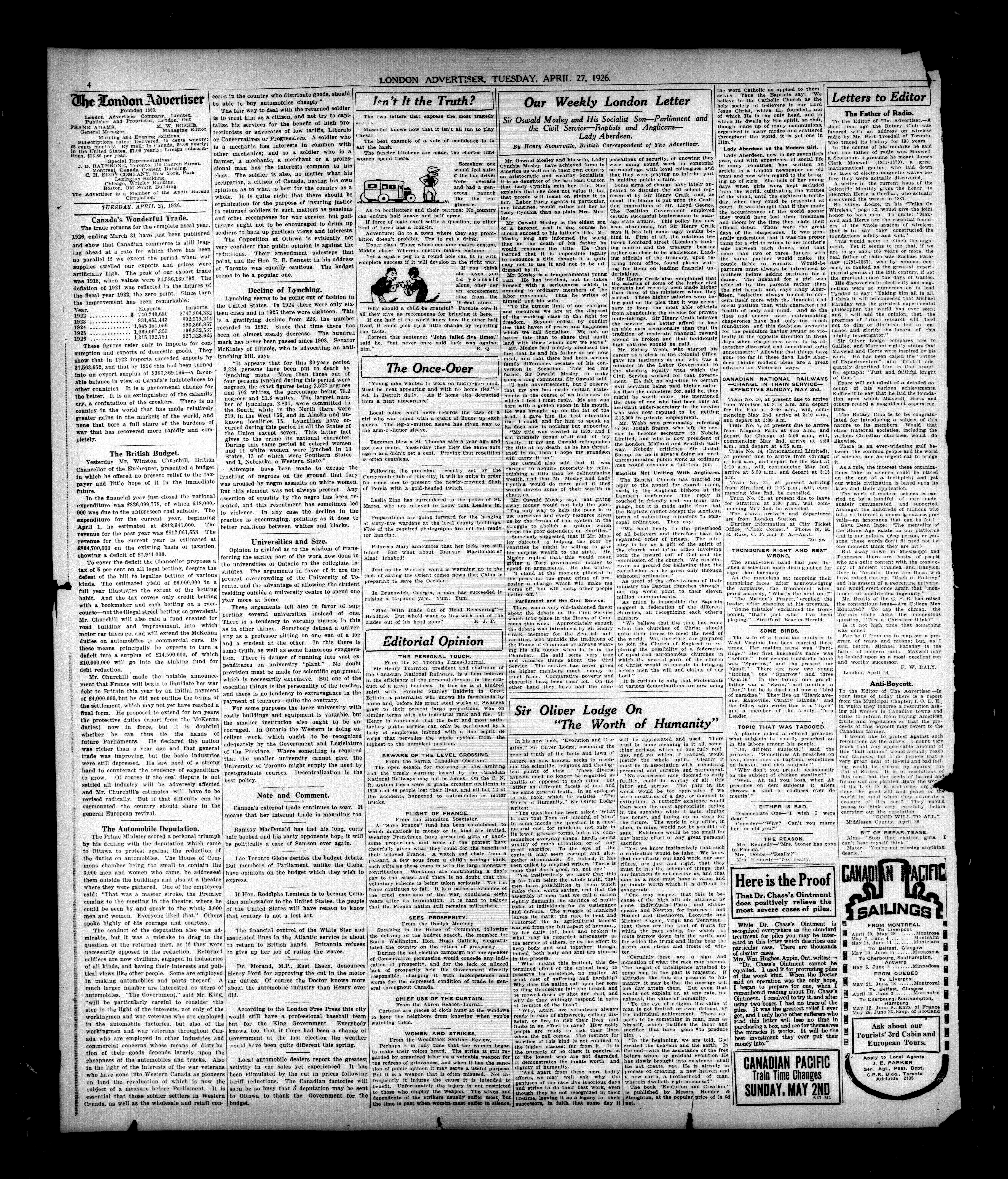 London, Ontario : London Advertiser Company, Limited, [1926]