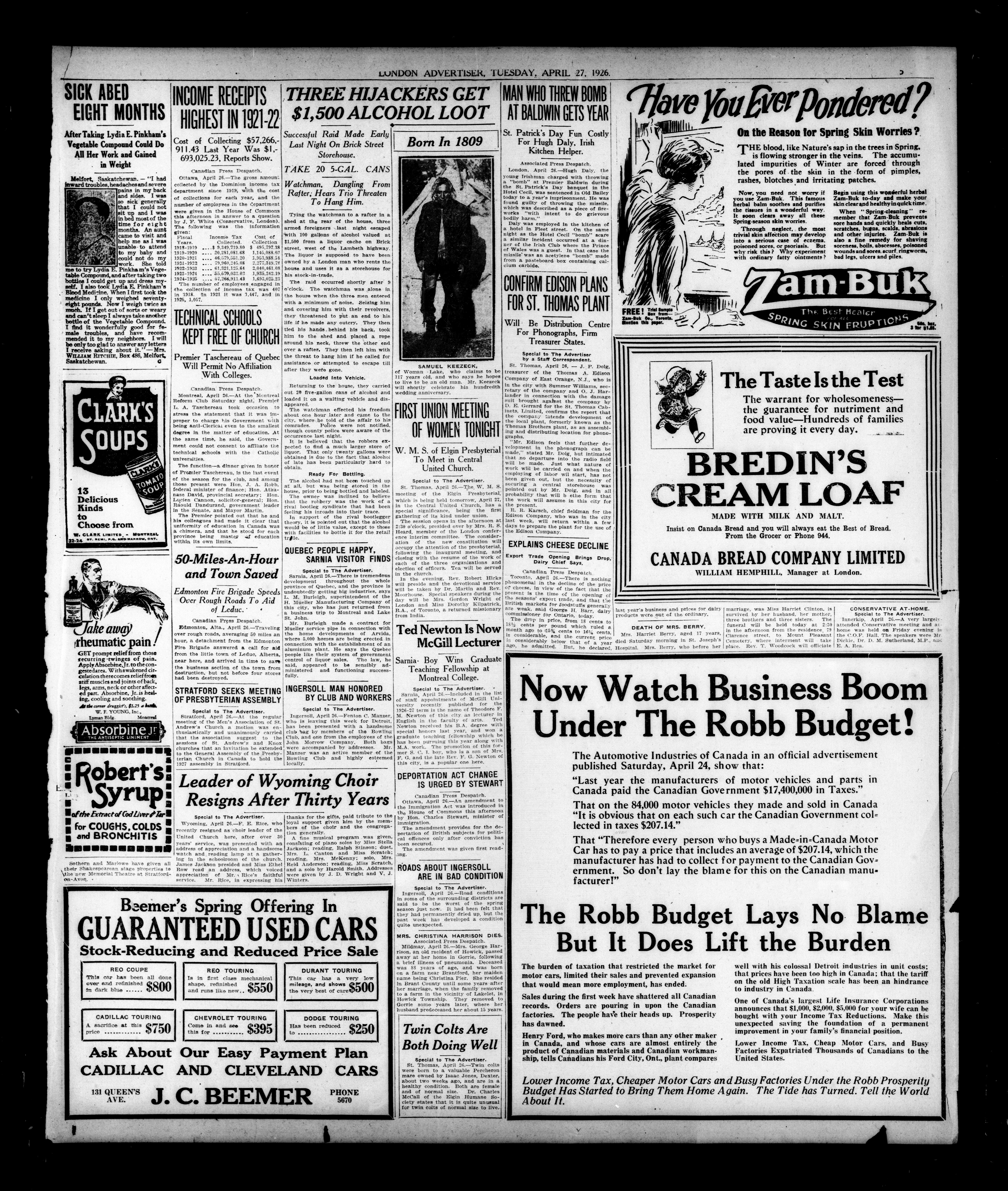London, Ontario : London Advertiser Company, Limited, [1926]; 14 images, 0 avec recherche en texte intégral